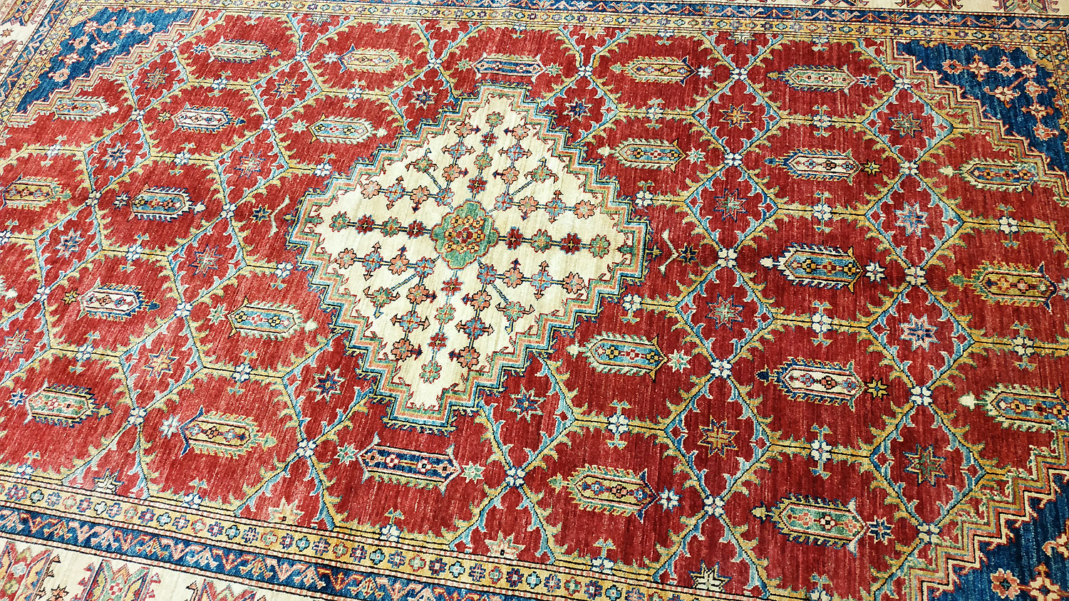 Dimensions : 292 x 196 cm -laine- Pays Afghanistan - Épaisseur : 8 mm - Densité de nouage : 300.000 Nœuds au m² - Surface : 5.72 m² - Poids : 17.17 Kgs - Age : contemporain - Confection : Noué main - Forme : Tapis de salon - Type : Tapis Oriental