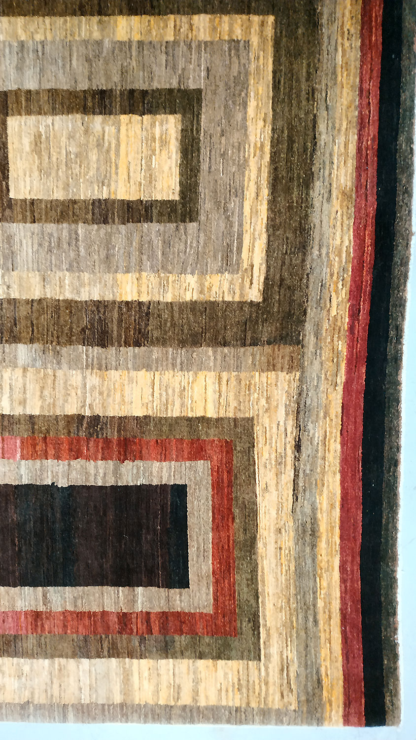 Dimensions : 230 x 170 cm -laine- Pays Afghanistan - Épaisseur : 8 mm - Densité de nouage : 200.000 Nœuds au m² - Surface : 3.91 m² - Poids : 11.73 Kgs - Age : contemporain - Confection : Noué main - Forme : Tapis de chambre - Type : Tapis de decoration
