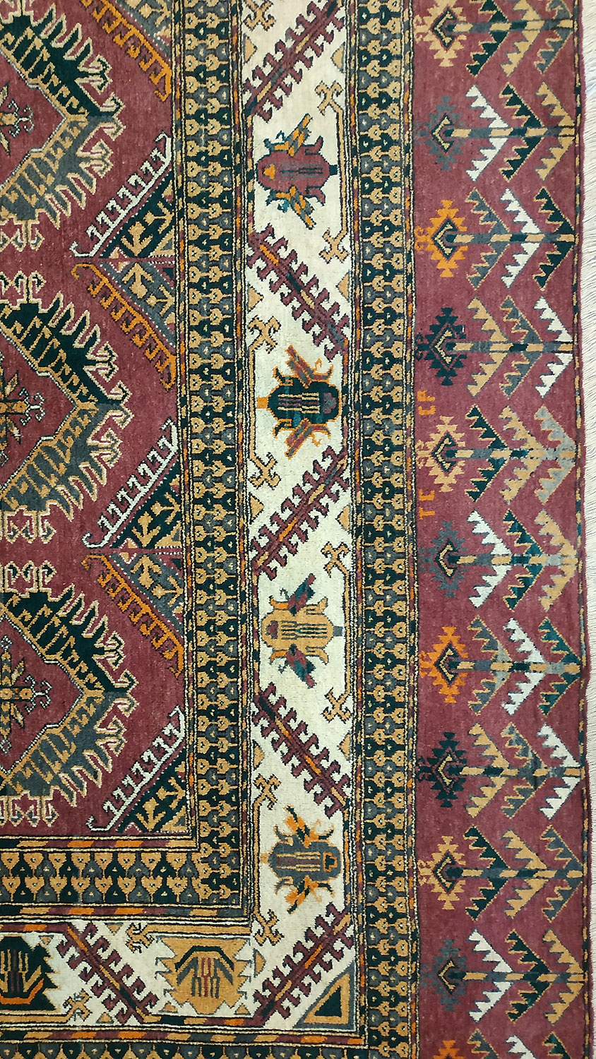 Dimensions : 266 x 189 cm -laine- Pays Afghanistan - Épaisseur : mm - Densité de nouage : Nœuds au m² - Surface : 0 m² - Poids : 0 Kgs - Age : - Confection : - Forme : - Type :