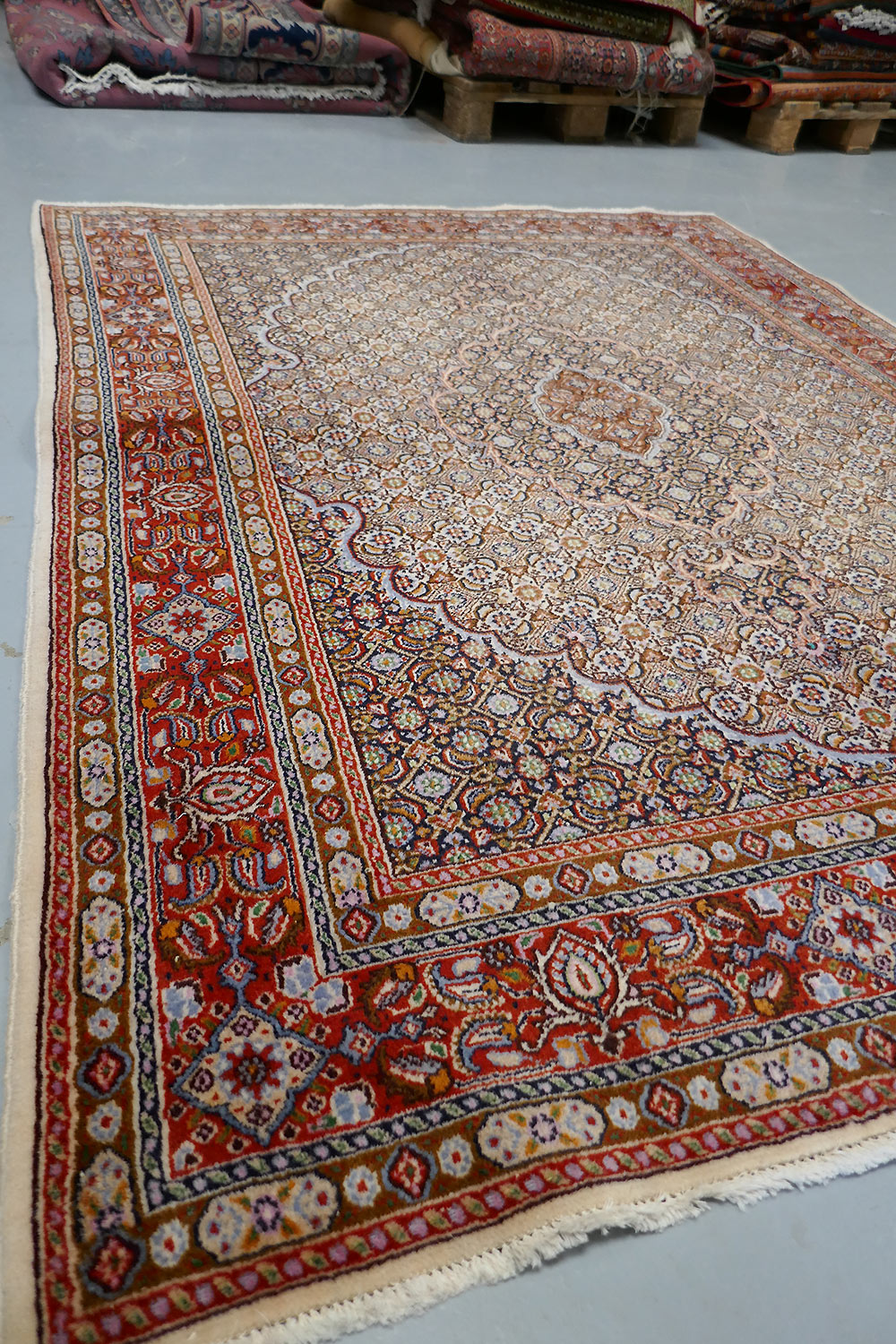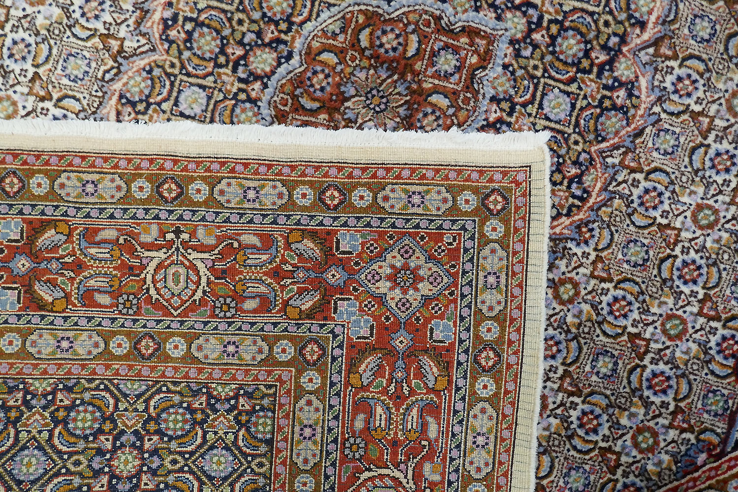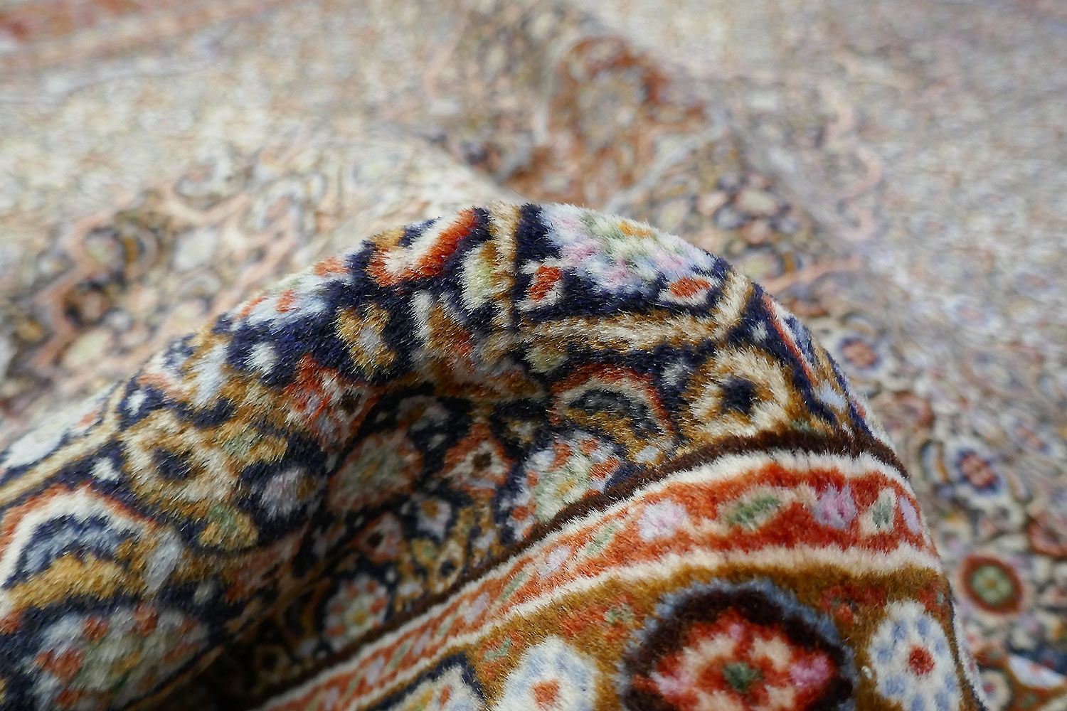 Dimensions : 209 x 147 cm -laine et soie- Pays Iran - Épaisseur : mm - Densité de nouage : Nœuds au m² - Surface : 0 m² - Poids : 0 Kgs - Age : - Confection : - Forme : - Type :
