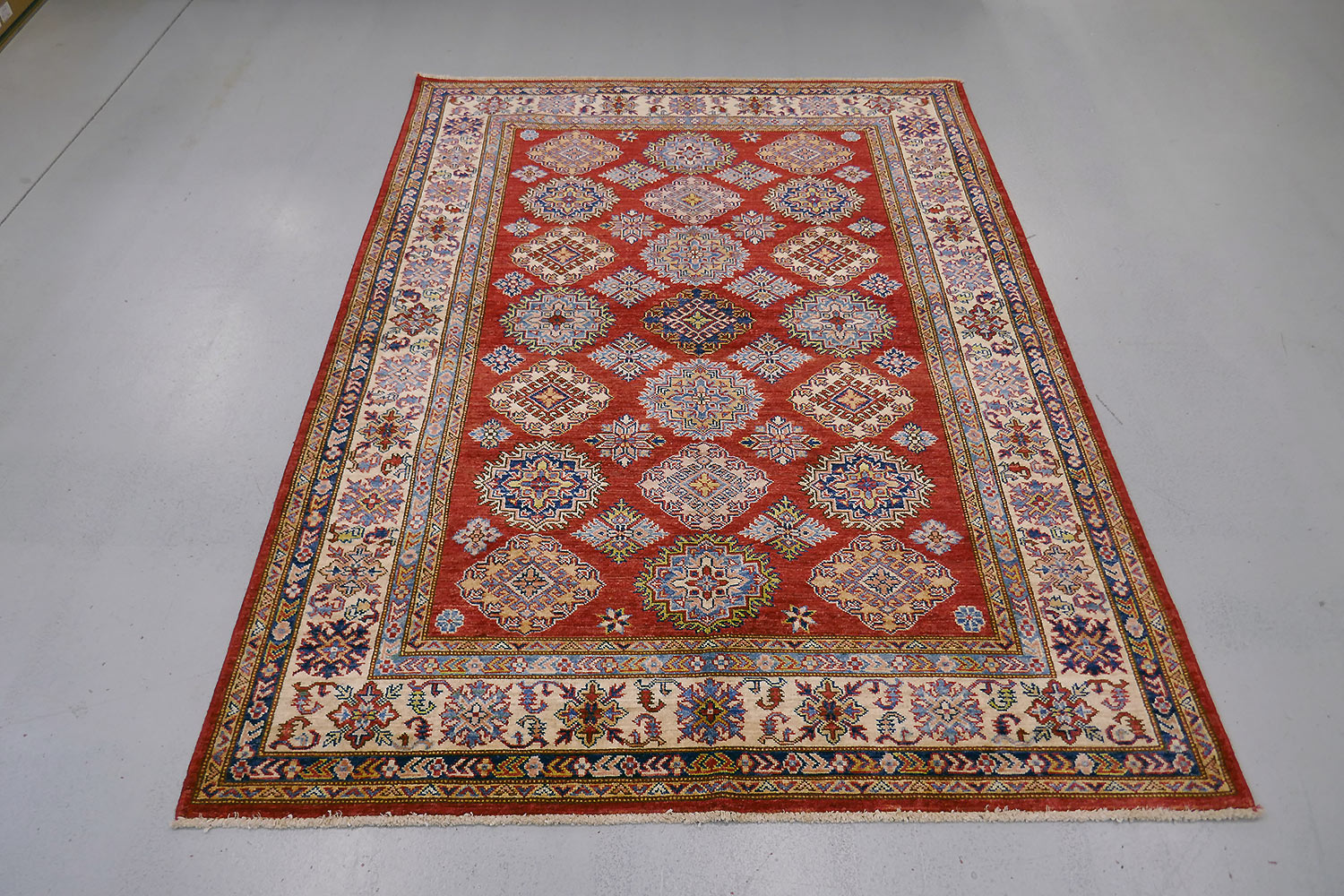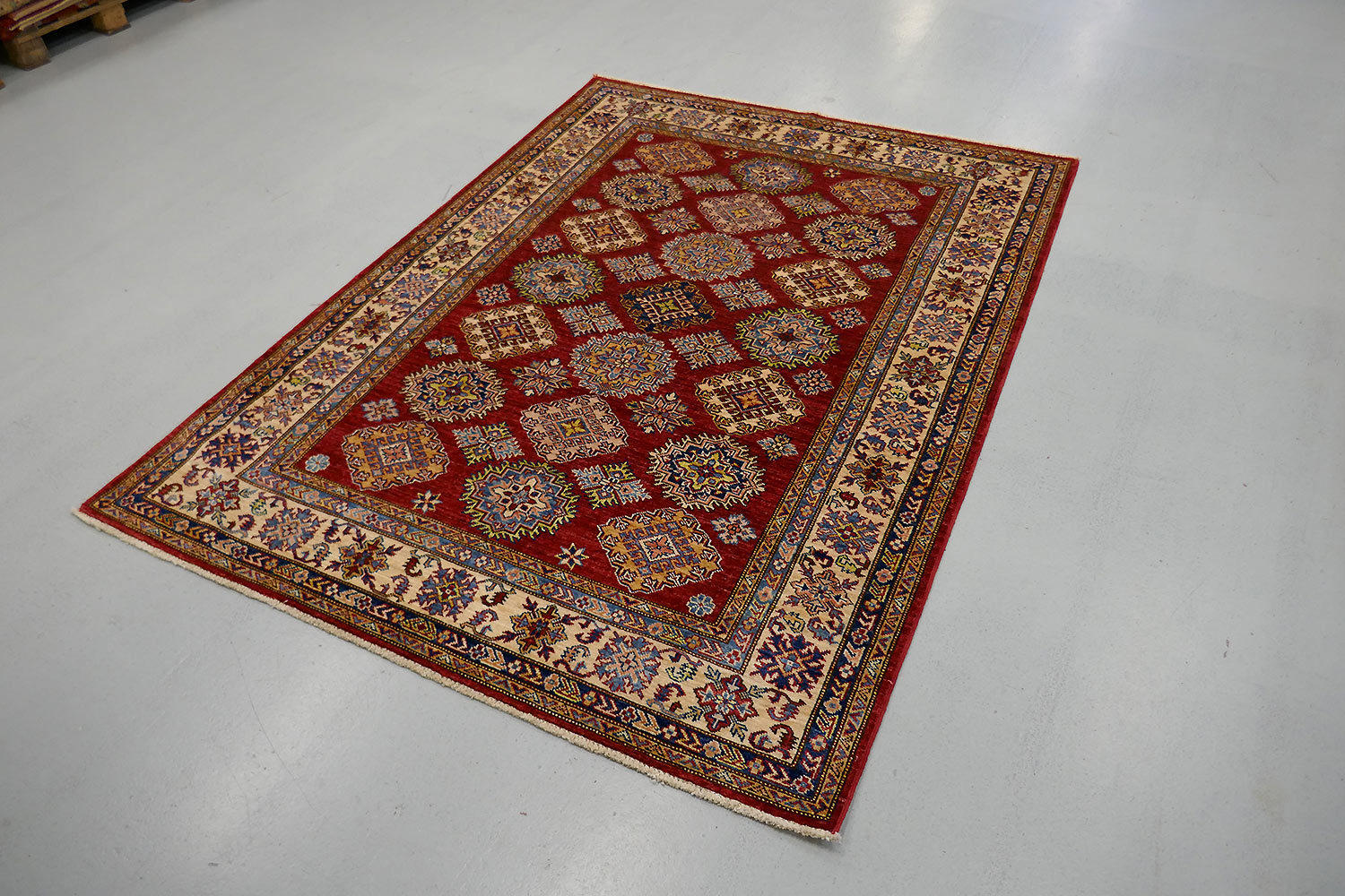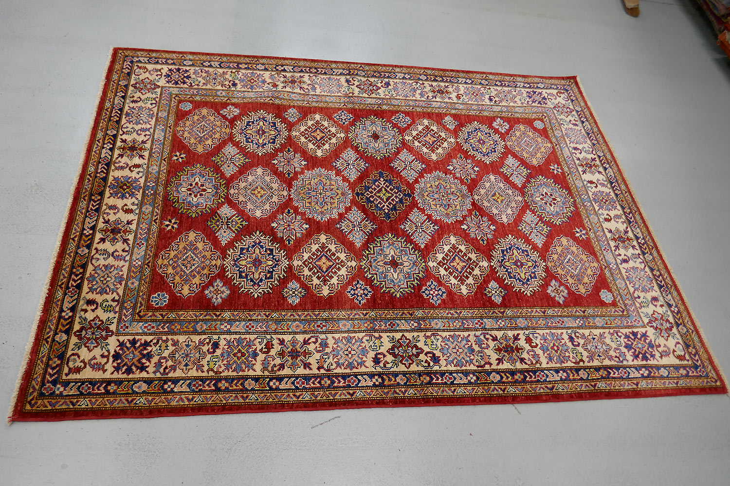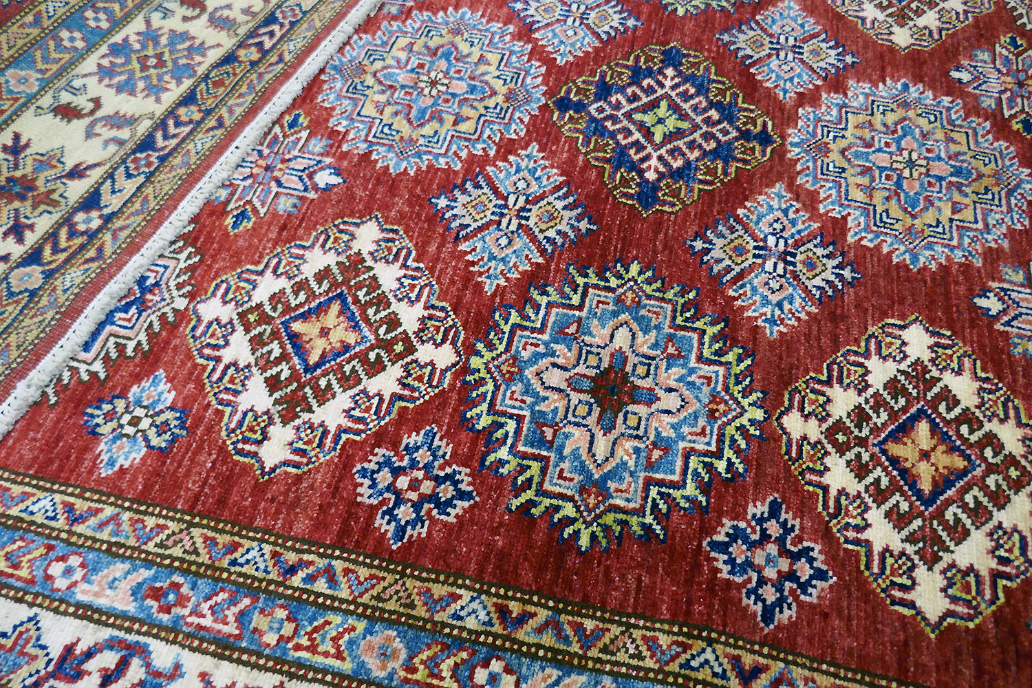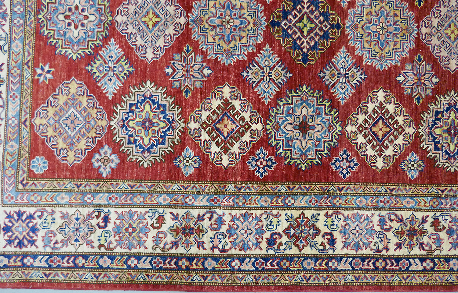 Dimensions : 207 x 143 cm -laine- Pays Afghanistan - Épaisseur : 8 mm - Densité de nouage : 300.000 Nœuds au m² - Surface : 2.96 m² - Poids : 8.88 Kgs - Age : contemporain - Confection : Noué main - Forme : Tapis de chambre - Type : Tapis Oriental