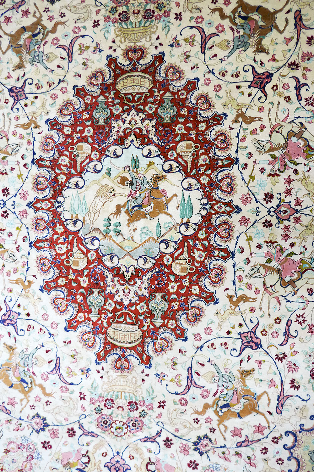Dimensions : 300 x 200 cm -soie- Pays Iran - Épaisseur : 3 mm - Densité de nouage : 1.000.000 Nœuds au m² - Surface : 6 m² - Poids : 12 Kgs - Age : contemporain - Confection : Noué main - Forme : Tapis de salon - Type : Tapis persan