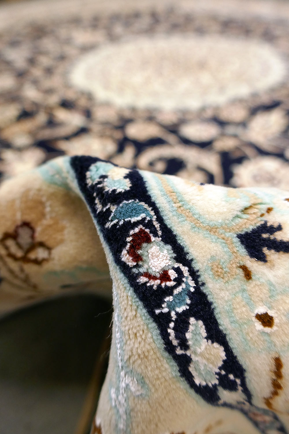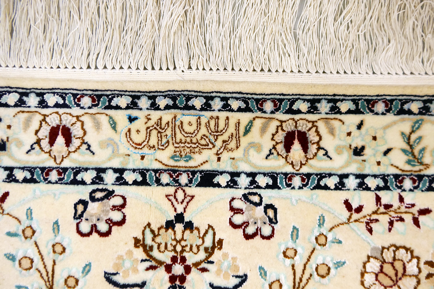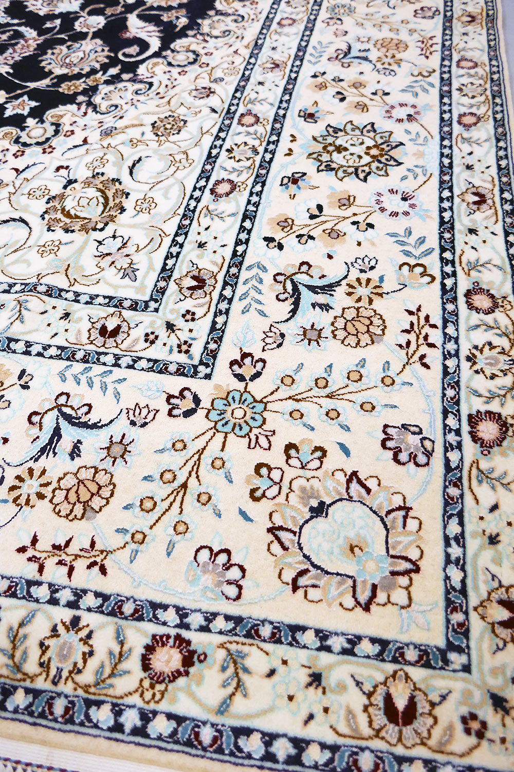 Dimensions : 310 x 210 cm -laine et soie- Pays Iran - Épaisseur : 8 mm - Densité de nouage : 800.000 Nœuds au m² - Surface : 6.51 m² - Poids : 16.28 Kgs - Age : contemporain - Confection : Noué main - Forme : Tapis de salon - Type : Tapis persan