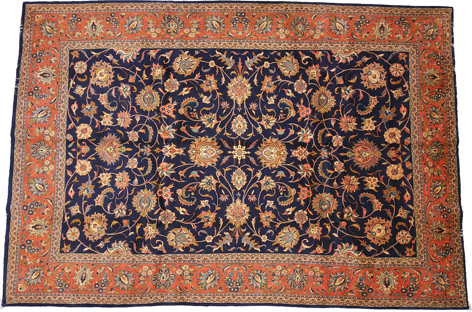 Dimensions : 335 x 242 cm -laine et soie- Pays Iran - Référence : T3010 - Épaisseur : 9 mm - Densité de nouage : 360.000 Nœuds au m² - Surface : 8.11 m² - Poids : 20.27 Kgs - Age : contemporain - Confection : Noué main - Utilisation : Tapis de salon - Origine : Tapis persan.