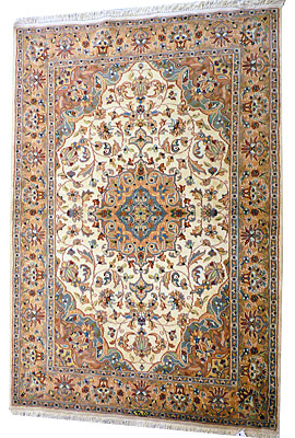Dimensions : 181 x 121 cm -laine et soie- Pays Pakistan - Référence : T1609 - Épaisseur : 7 mm - Densité de nouage : 200.000 Nœuds au m² - Surface : 2.19 m² - Poids : 5.48 Kgs - Age : contemporain - Confection : Noué main - Utilisation : Tapis de chambre - Origine : Tapis Oriental