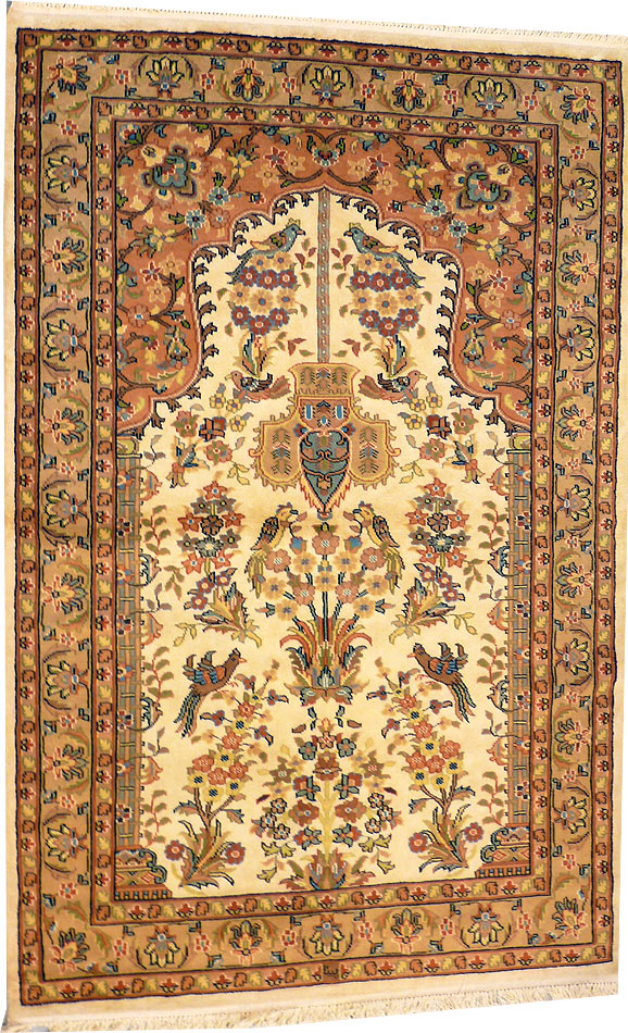 Dimensions : 186 x 126 cm -laine et soie- Pays Pakistan - Référence : T1916 - Épaisseur : 7 mm - Densité de nouage : 200.000 Nœuds au m² - Surface : 2.34 m² - Poids : 5.86 Kgs - Age : contemporain - Confection : Noué main - Utilisation : Tapis de chambre - Origine : Tapis Oriental