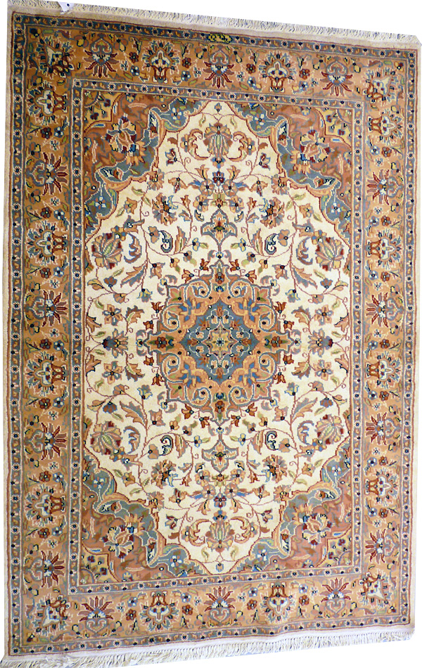 Dimensions : 185 x 124 cm -laine et soie- Pays Pakistan - Référence : T1713 - Épaisseur : 7 mm - Densité de nouage : 200.000 Nœuds au m² - Surface : 2.29 m² - Poids : 5.74 Kgs - Age : contemporain - Confection : Noué main - Utilisation : Tapis de chambre - Origine : Tapis Oriental