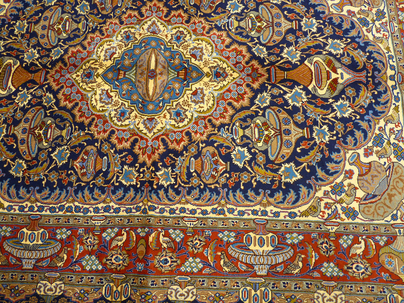 Dimensions : 300 x 205 cm -laine- Pays Iran - Épaisseur : 12 mm - Densité de nouage : 300.000 Nœuds au m² - Surface : 6.15 m² - Poids : 18.45 Kgs - Age : contemporain - Confection : Noué main - Forme : Tapis de salon - Type : Tapis persan