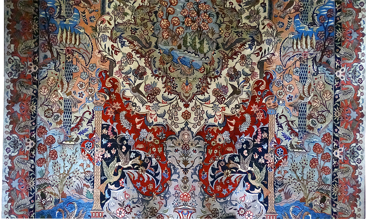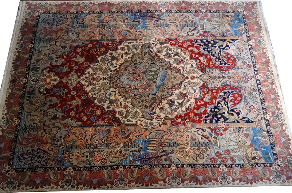 Dimensions : 302 x 254 cm -laine- Pays Iran - Épaisseur : mm - Densité de nouage : Nœuds au m² - Surface : 0 m² - Poids : 0 Kgs - Age : - Confection : - Forme : - Type :