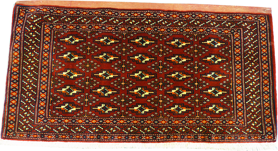 Dimensions : 110 x 65 cm -laine- Pays Pakistan - Épaisseur : mm - Densité de nouage : Nœuds au m² - Surface : 0.72 m² - Poids : 2.15 Kgs - Age : contemporain - Confection : Noué main - Forme : - Type : Tapis de salon