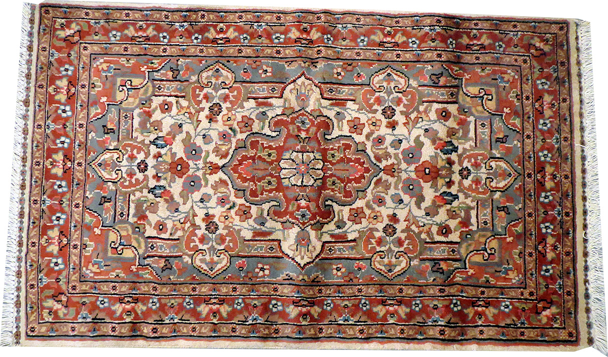 Dimensions : 97 x 61 cm -laine et soie- Pays Pakistan - Épaisseur : 7 mm - Densité de nouage : 200.000 Nœuds au m² - Surface : 0.59 m² - Poids : 1.48 Kgs - Age : contemporain - Confection : Noué main - Forme : Tapis de chambre - Type : Tapis Oriental