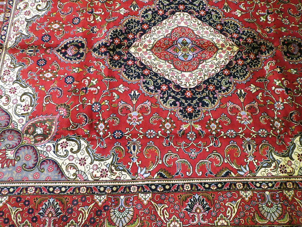 Dimensions : 417 x 298 cm -laine et soie- Pays Iran - Épaisseur : 8 mm - Densité de nouage : 800.000 Nœuds au m² - Surface : 12.43 m² - Poids : 31.07 Kgs - Age : contemporain - Confection : Noué main - Forme : Tapis de salon - Type : Tapis persan
