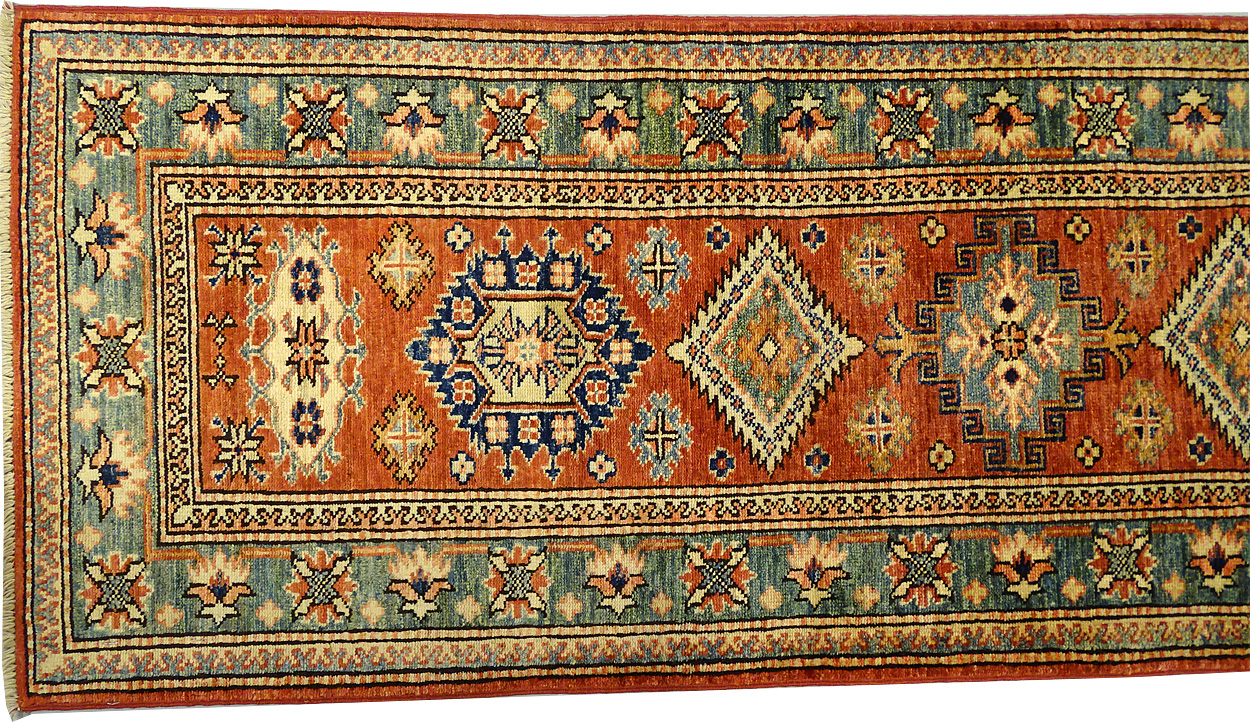 Dimensions : 167 x 70 cm -laine- Pays Afghanistan - Épaisseur : 8 mm - Densité de nouage : 300.000 Nœuds au m² - Surface : 1.17 m² - Poids : 3.51 Kgs - Age : contemporain - Confection : Noué main - Forme : Tapis de couloirs - Type : Tapis Oriental