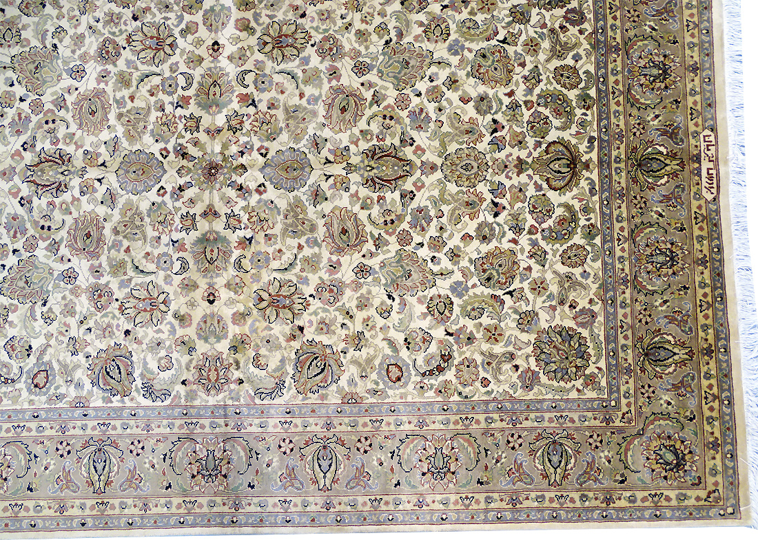 Dimensions : 242 x 171 cm -laine et soie- Pays Inde - Épaisseur : 10 mm - Densité de nouage : 500.000 Nœuds au m² - Surface : 4.14 m² - Poids : 10.35 Kgs - Age : contemporain - Confection : Noué main - Forme : Tapis de chambre - Type : Tapis Oriental