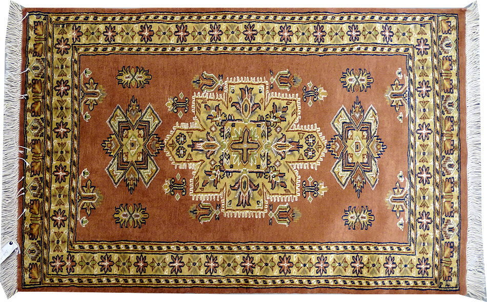 Dimensions : 130 x 81 cm -laine et soie- Pays Pakistan - Épaisseur : 7 mm - Densité de nouage : 250.000 Nœuds au m² - Surface : 1.05 m² - Poids : 2.11 Kgs - Age : contemporain - Confection : Noué main - Forme : Tapis de chambre - Type : Tapis Oriental