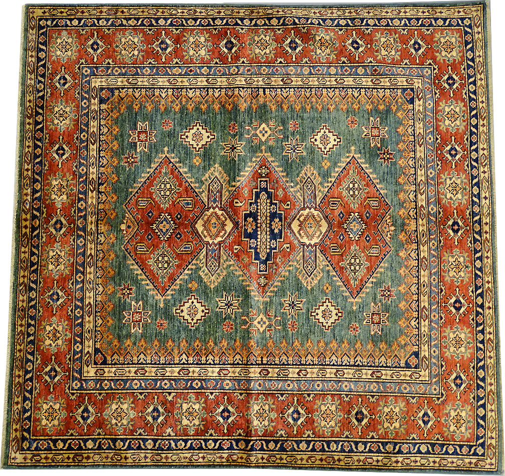 Dimensions : 198 x 197 cm -laine- Pays Afghanistan - Épaisseur : 8 mm - Densité de nouage : 300.000 Nœuds au m² - Surface : 3.9 m² - Poids : 11.7 Kgs - Age : contemporain - Confection : Noué main - Forme : Tapis carré - Type : Tapis Oriental