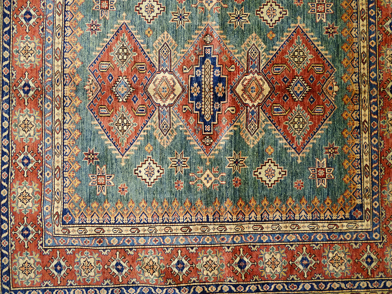 Dimensions : 195 x 175 cm -laine- Pays Afghanistan - Épaisseur : 8 mm - Densité de nouage : 300.000 Nœuds au m² - Surface : 3.41 m² - Poids : 10.24 Kgs - Age : contemporain - Confection : Noué main - Forme : Tapis carré - Type : Tapis Oriental