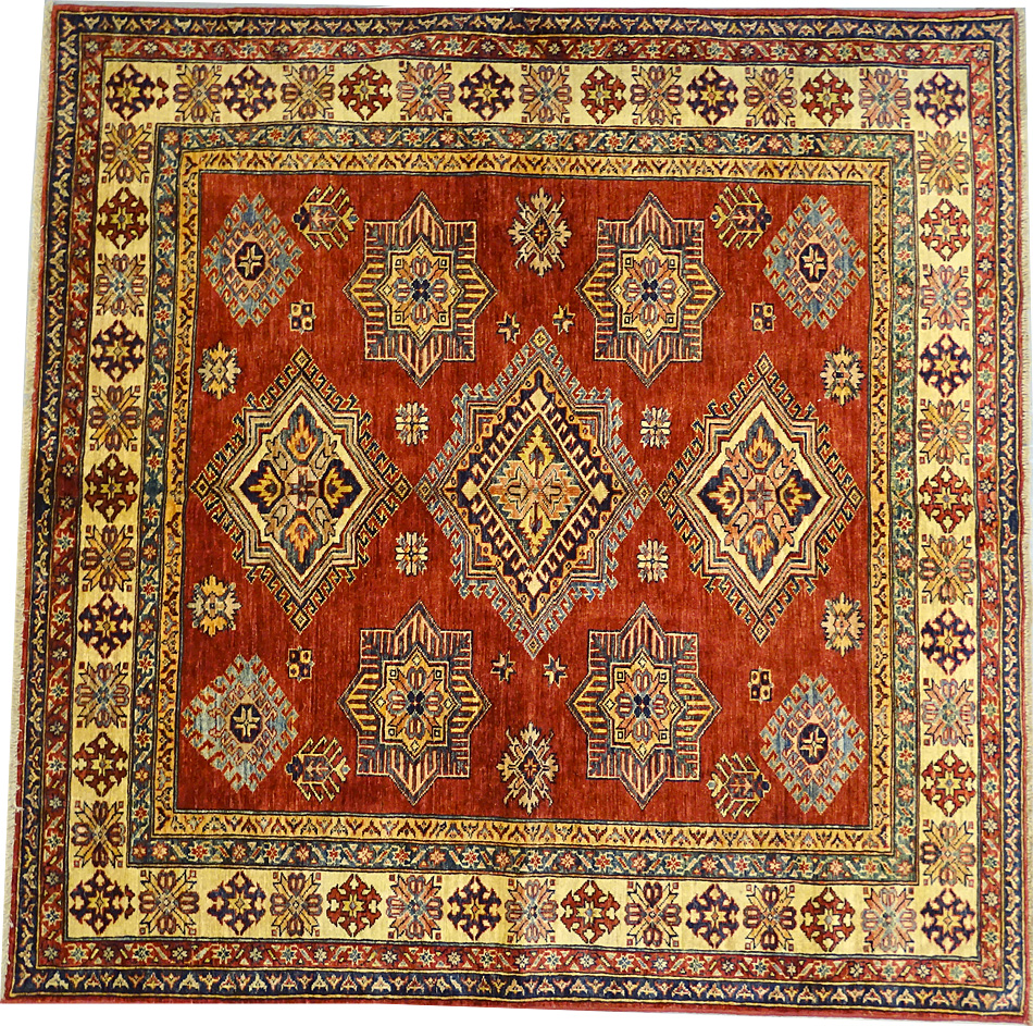 Dimensions : 198 x 197 cm -laine- Pays Afghanistan - Épaisseur : 8 mm - Densité de nouage : 300.000 Nœuds au m² - Surface : 3.9 m² - Poids : 11.7 Kgs - Age : contemporain - Confection : Noué main - Forme : Tapis carré - Type : Tapis Oriental