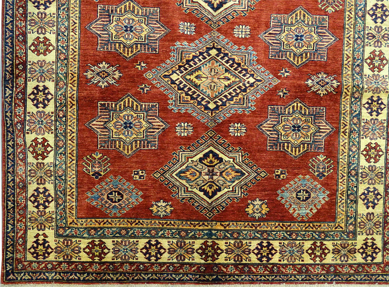 Dimensions : 195 x 175 cm -laine- Pays Afghanistan - Épaisseur : 8 mm - Densité de nouage : 300.000 Nœuds au m² - Surface : 3.41 m² - Poids : 10.24 Kgs - Age : contemporain - Confection : Noué main - Forme : Tapis carré - Type : Tapis Oriental