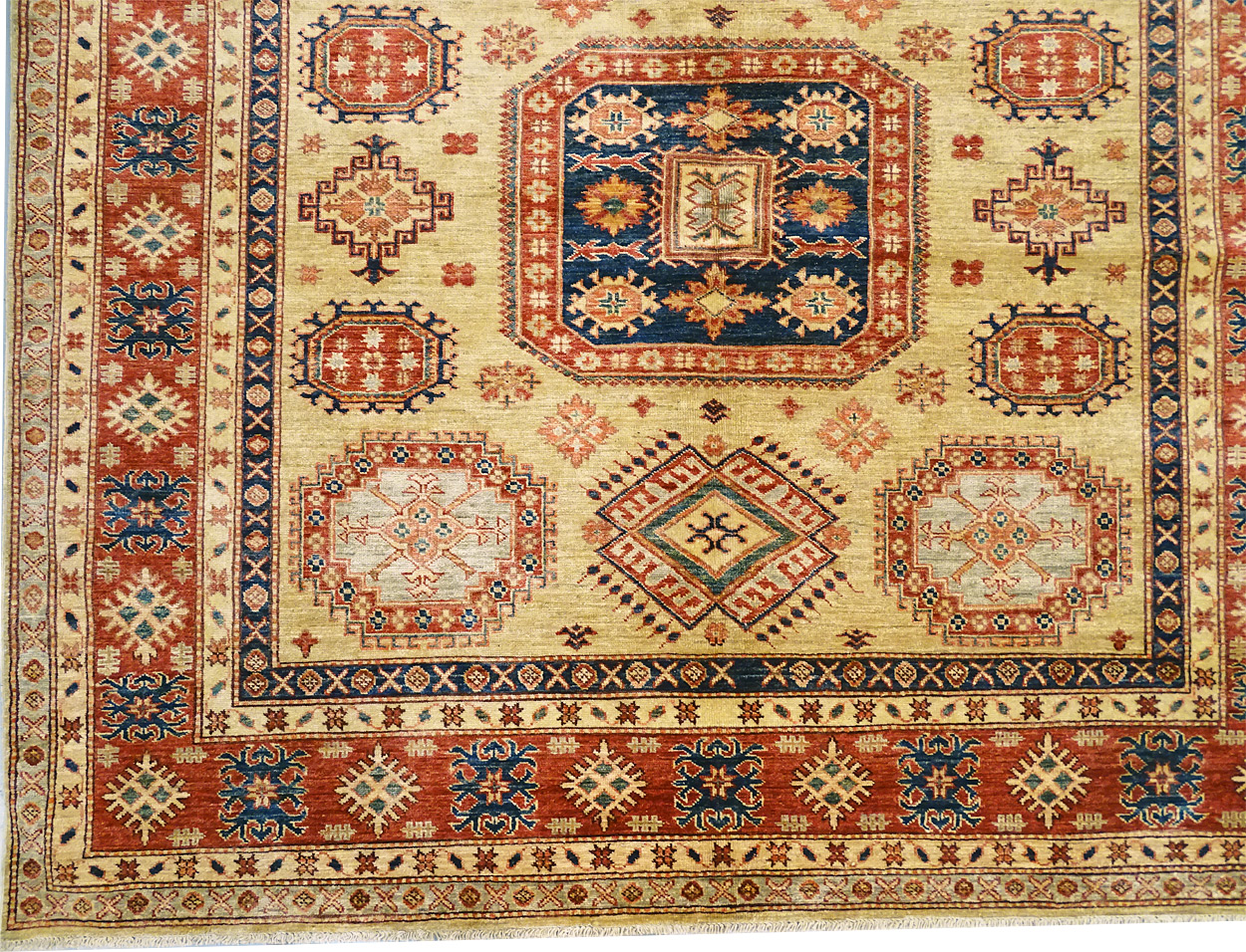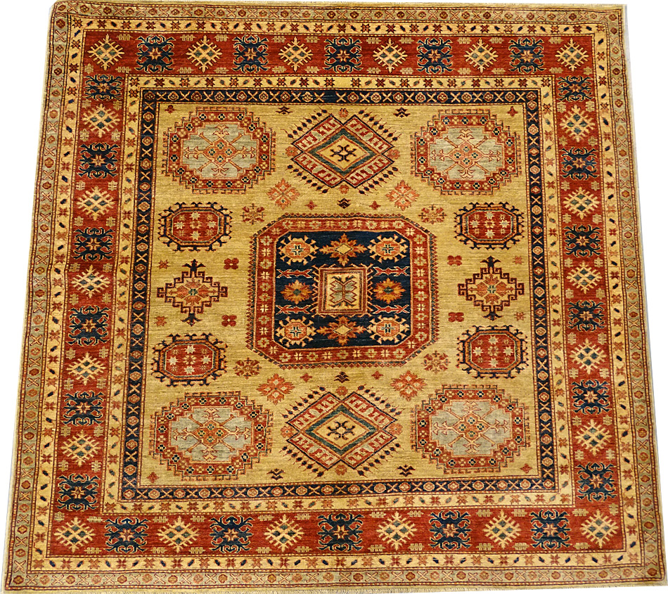 Dimensions : 198 x 197 cm -laine- Pays Afghanistan - Épaisseur : 8 mm - Densité de nouage : 300.000 Nœuds au m² - Surface : 3.9 m² - Poids : 11.7 Kgs - Age : contemporain - Confection : Noué main - Forme : Tapis carré - Type : Tapis Oriental