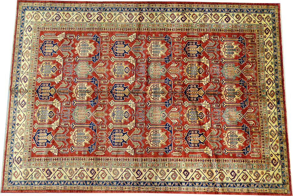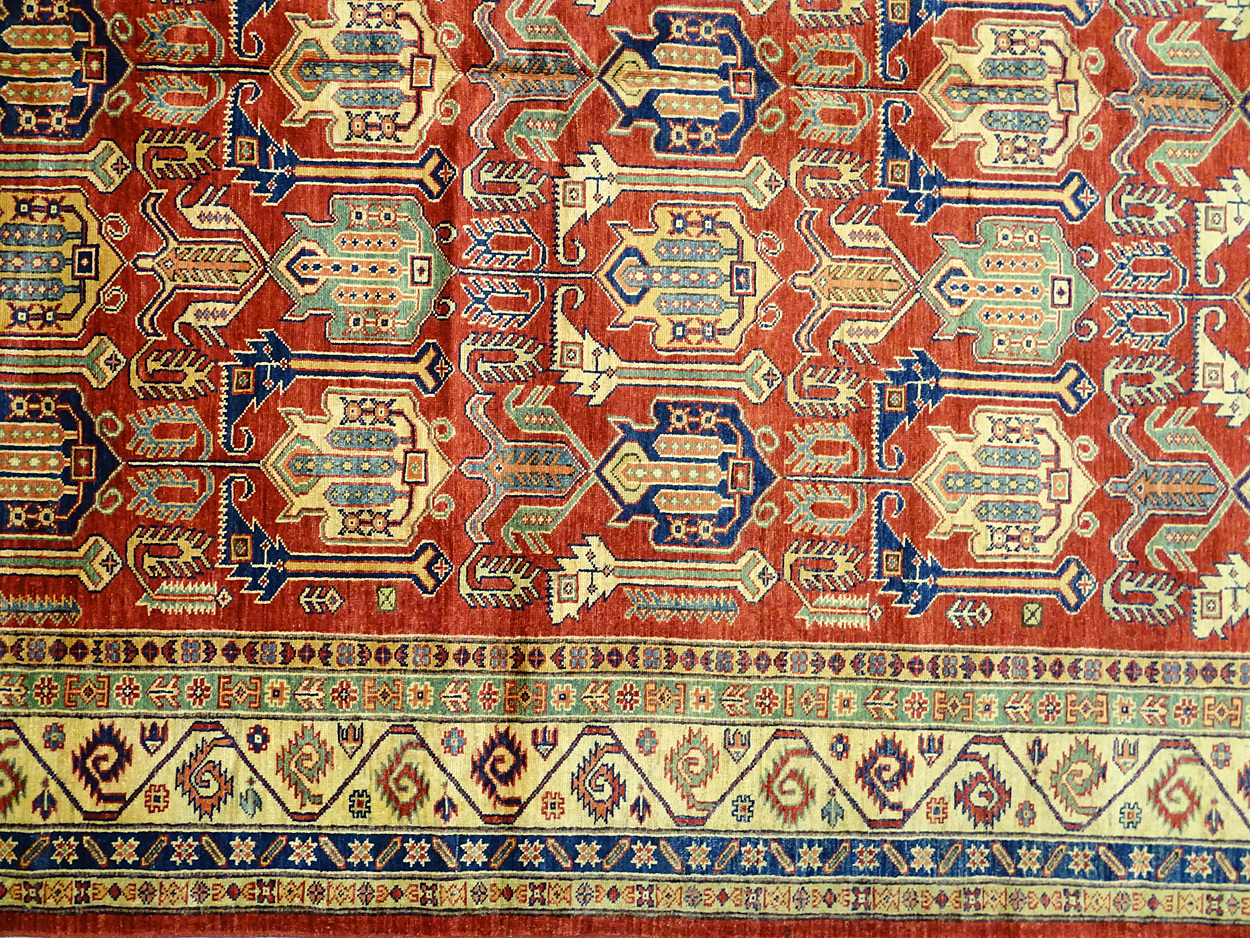 Dimensions : 292 x 196 cm -laine- Pays Afghanistan - Épaisseur : 8 mm - Densité de nouage : 300.000 Nœuds au m² - Surface : 5.72 m² - Poids : 17.17 Kgs - Age : contemporain - Confection : Noué main - Forme : Tapis de salon - Type : Tapis Oriental