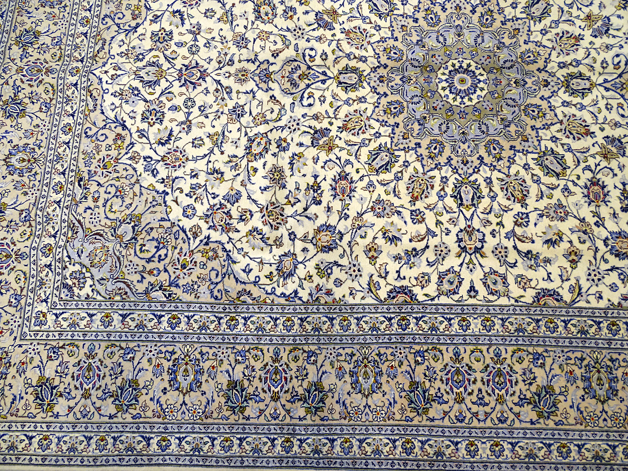 Dimensions : 415 x 310 cm -laine- Pays Iran - Épaisseur : 9 mm - Densité de nouage : 200.000 Nœuds au m² - Surface : 12.87 m² - Poids : 38.6 Kgs - Age : contemporain - Confection : Noué main - Forme : Tapis de salon - Type : Tapis persan