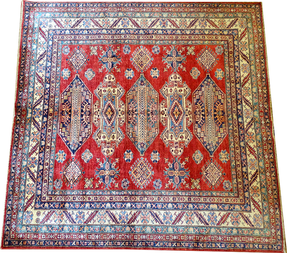 Dimensions : 198 x 190 cm -laine- Pays Afghanistan - Épaisseur : 8 mm - Densité de nouage : 300.000 Nœuds au m² - Surface : 3.76 m² - Poids : 11.29 Kgs - Age : contemporain - Confection : Noué main - Forme : Tapis carré - Type : Tapis Oriental