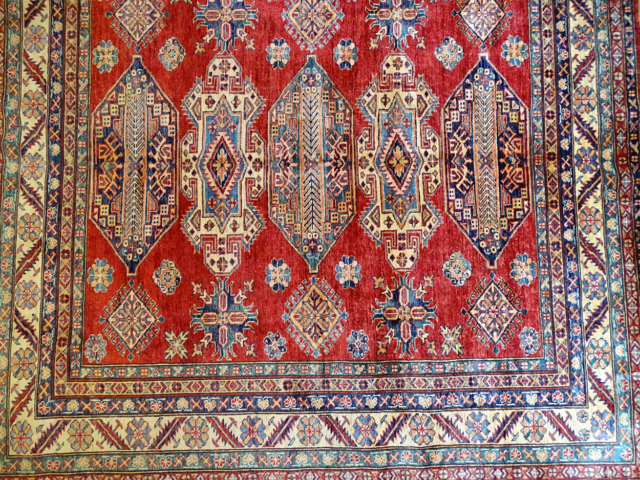 Dimensions : 211 x 197 cm -laine- Pays Afghanistan - Épaisseur : 8 mm - Densité de nouage : 300.000 Nœuds au m² - Surface : 4.16 m² - Poids : 12.47 Kgs - Age : contemporain - Confection : Noué main - Forme : Tapis carré - Type : Tapis Oriental