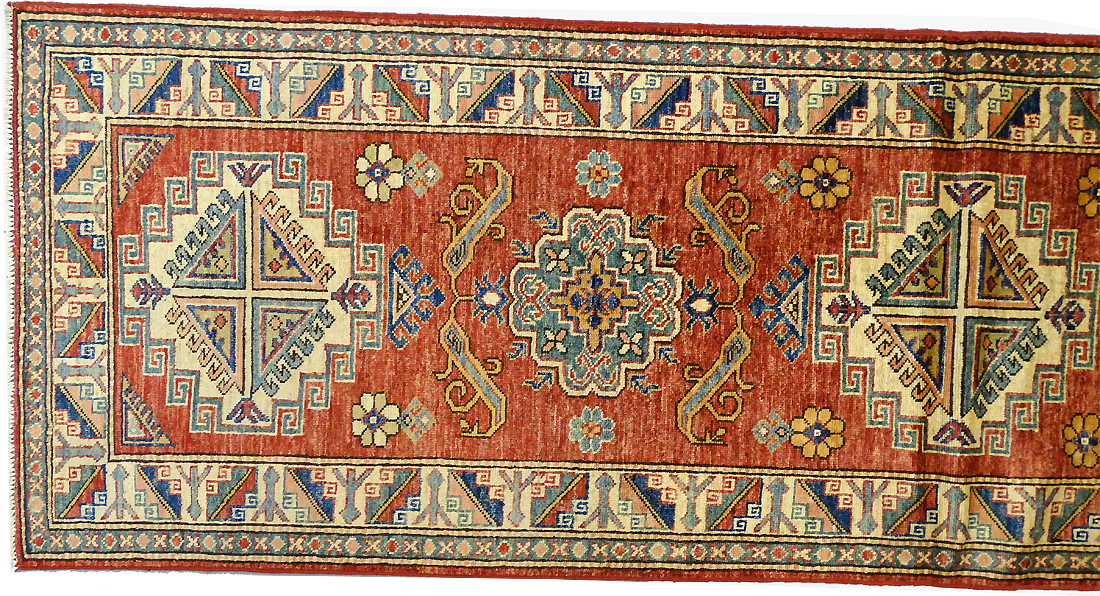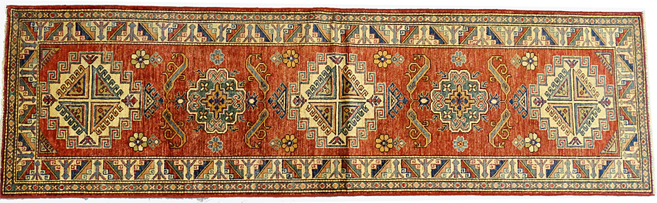 Dimensions : 266 x 81 cm -laine- Pays Afghanistan - Épaisseur : 8 mm - Densité de nouage : 300.000 Nœuds au m² - Surface : 2.15 m² - Poids : 6.46 Kgs - Age : contemporain - Confection : Noué main - Forme : Tapis de couloirs - Type : Tapis Oriental