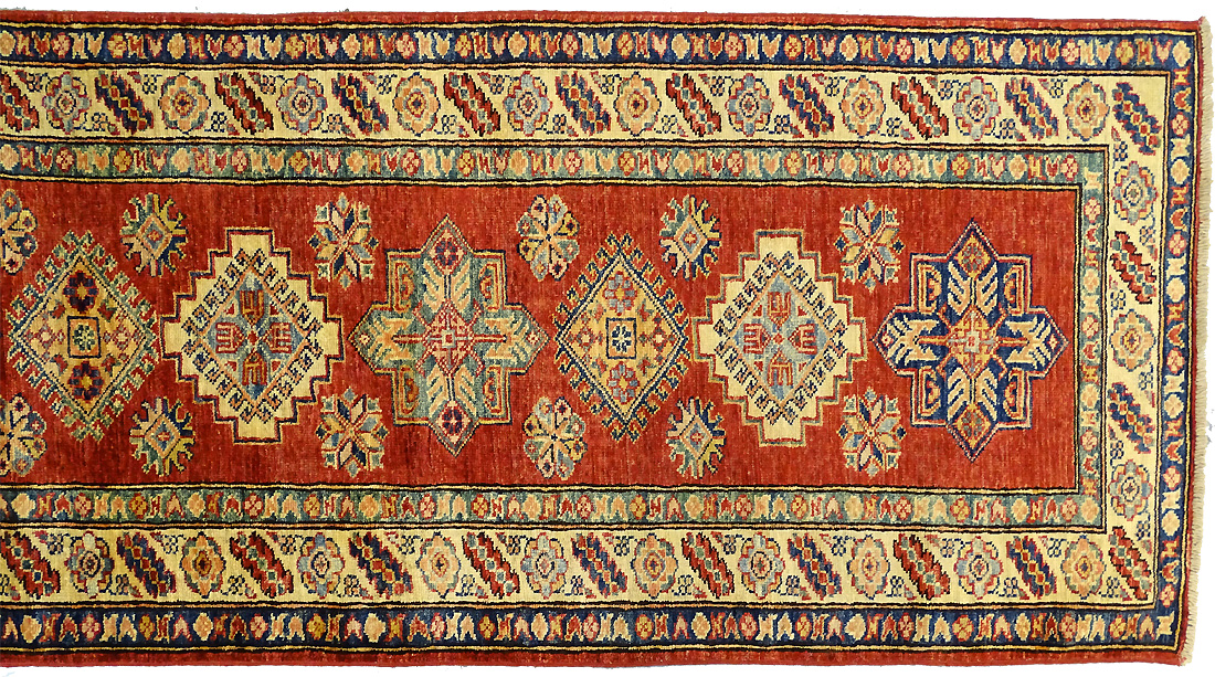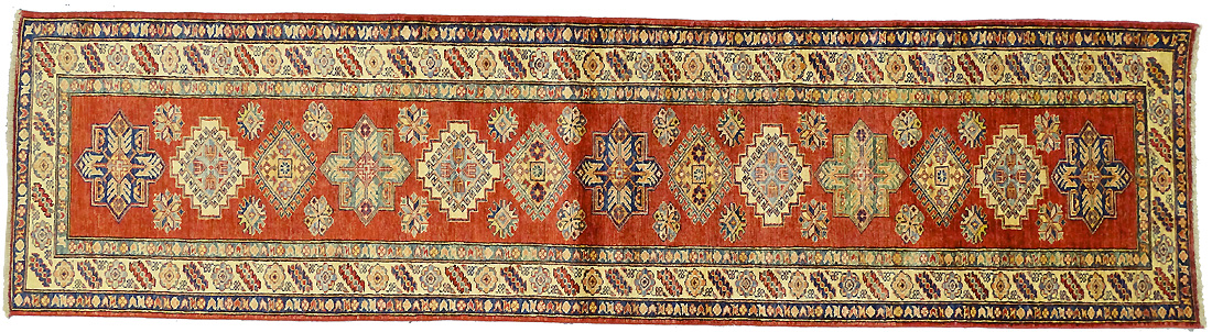 Dimensions : 295 x 78 cm -laine- Pays Afghanistan - Épaisseur : 8 mm - Densité de nouage : 300.000 Nœuds au m² - Surface : 2.3 m² - Poids : 6.9 Kgs - Age : contemporain - Confection : Noué main - Forme : Tapis de couloirs - Type : Tapis Oriental