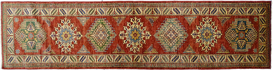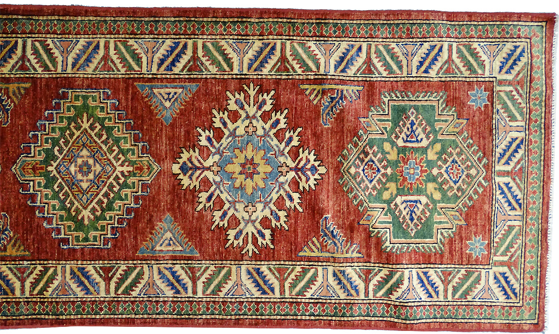 Dimensions : 297 x 78 cm -laine- Pays Afghanistan - Épaisseur : 8 mm - Densité de nouage : 300.000 Nœuds au m² - Surface : 2.32 m² - Poids : 6.95 Kgs - Age : contemporain - Confection : Noué main - Forme : Tapis de couloirs - Type : Tapis Oriental