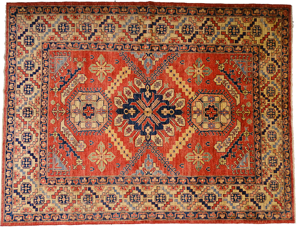 Dimensions : 242 x 182 cm -laine- Pays Afghanistan - Épaisseur : 8 mm - Densité de nouage : 300.000 Nœuds au m² - Surface : 4.4 m² - Poids : 13.21 Kgs - Age : contemporain - Confection : Noué main - Forme : Tapis de chambre - Type : Tapis Oriental