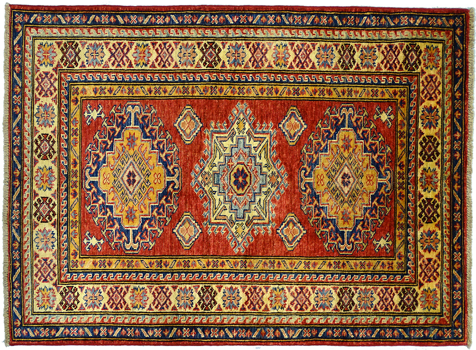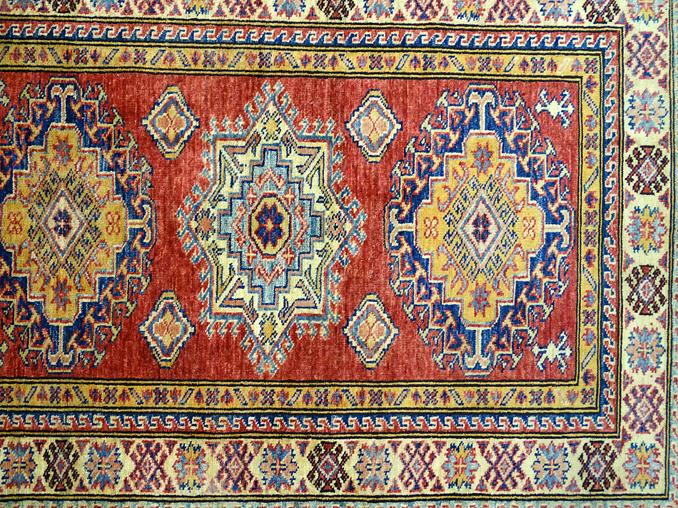 Dimensions : 132 x 97 cm -laine- Pays Afghanistan - Épaisseur : 8 mm - Densité de nouage : 300.000 Nœuds au m² - Surface : 1.28 m² - Poids : 3.84 Kgs - Age : contemporain - Confection : Noué main - Forme : Tapis de chambre - Type : Tapis Oriental