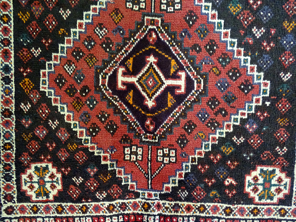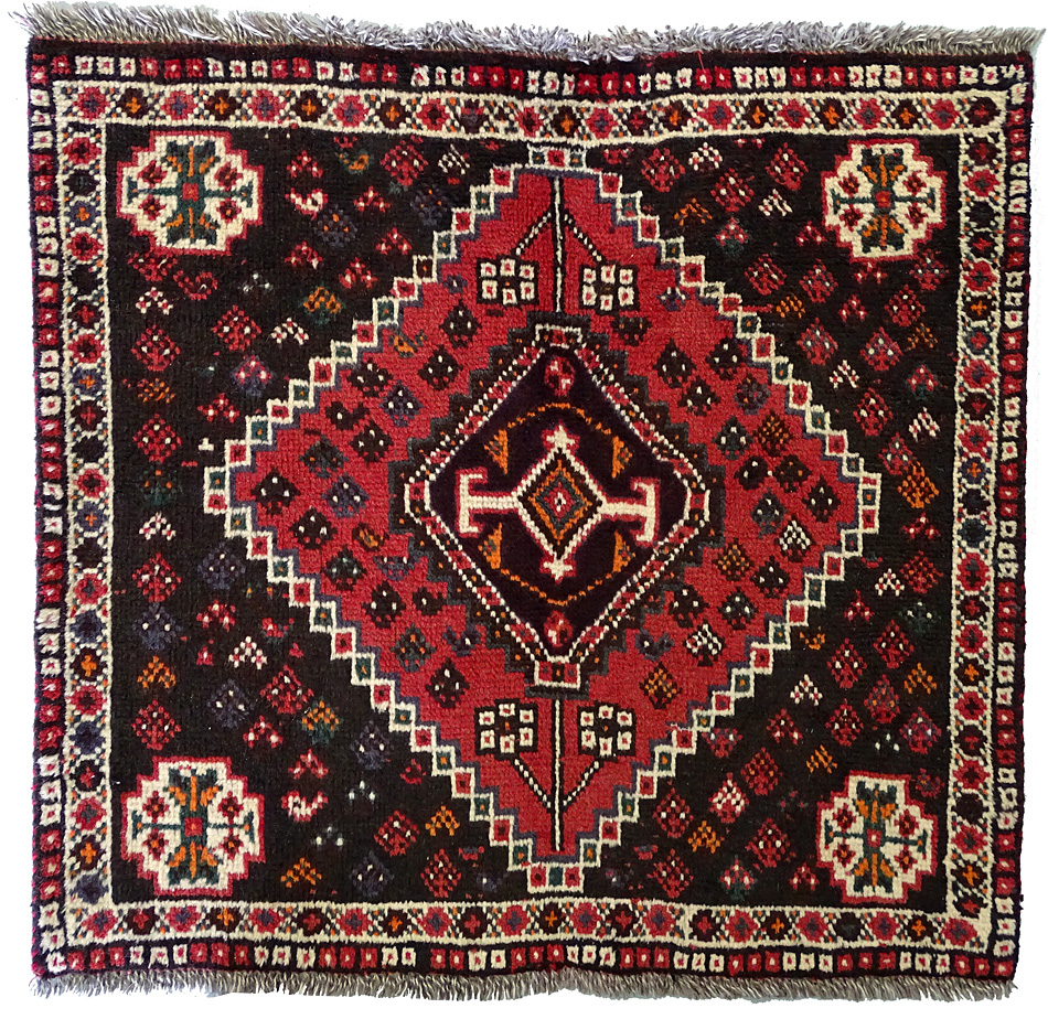 Dimensions : 112 x 105 cm -laine- Pays Iran - Épaisseur : mm - Densité de nouage : Nœuds au m² - Surface : 0 m² - Poids : 0 Kgs - Age : - Confection : - Forme : - Type :
