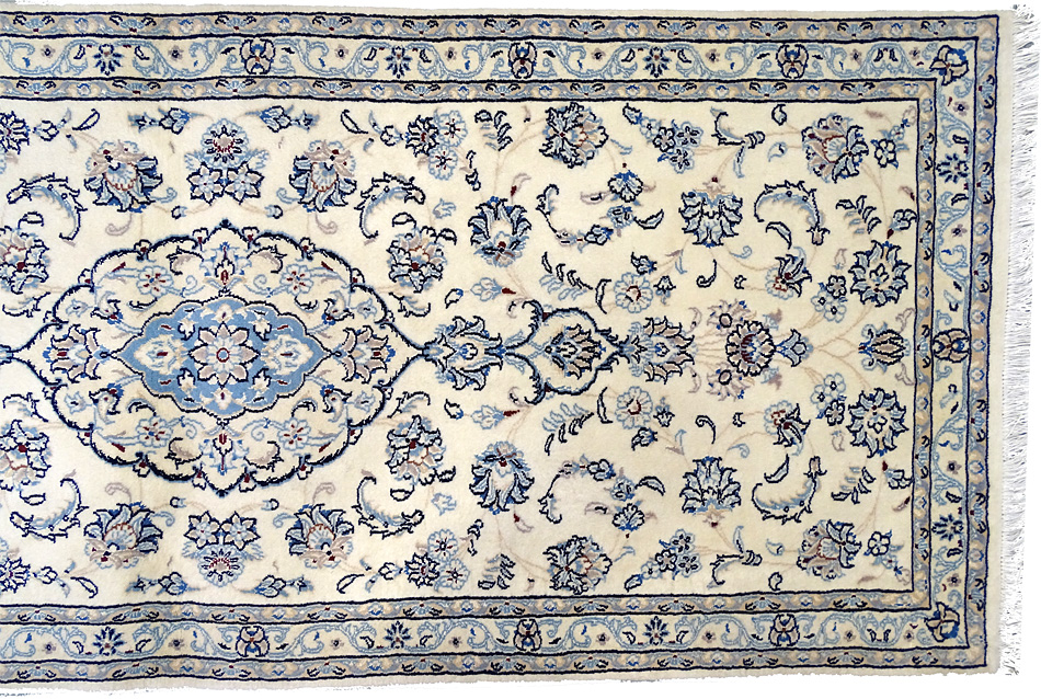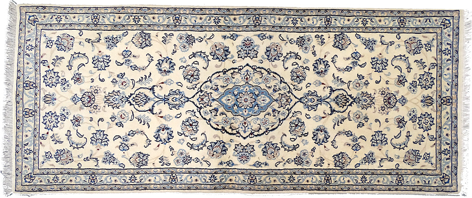 Dimensions : 199 x 59 cm -laine et soie- Pays Iran - Épaisseur : 9 mm - Densité de nouage : 360.000 Nœuds au m² - Surface : 1.17 m² - Poids : 2.94 Kgs - Age : contemporain - Confection : Noué main - Forme : Tapis de couloirs - Type : Tapis persan