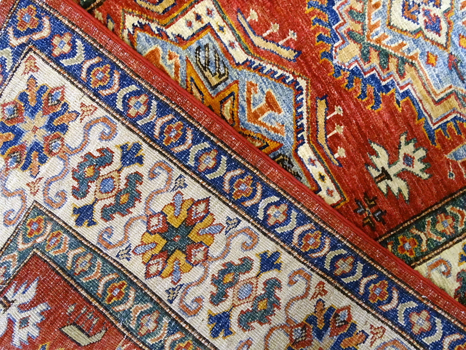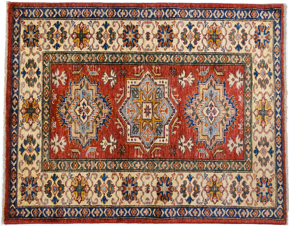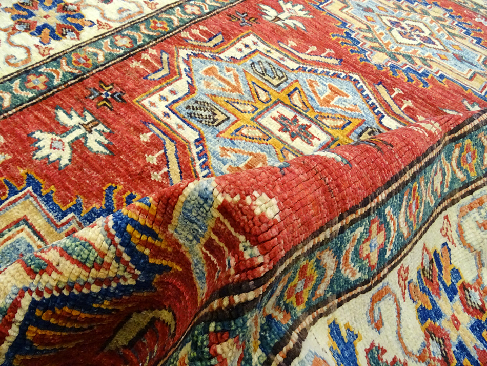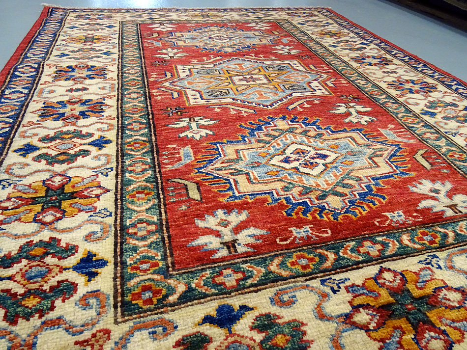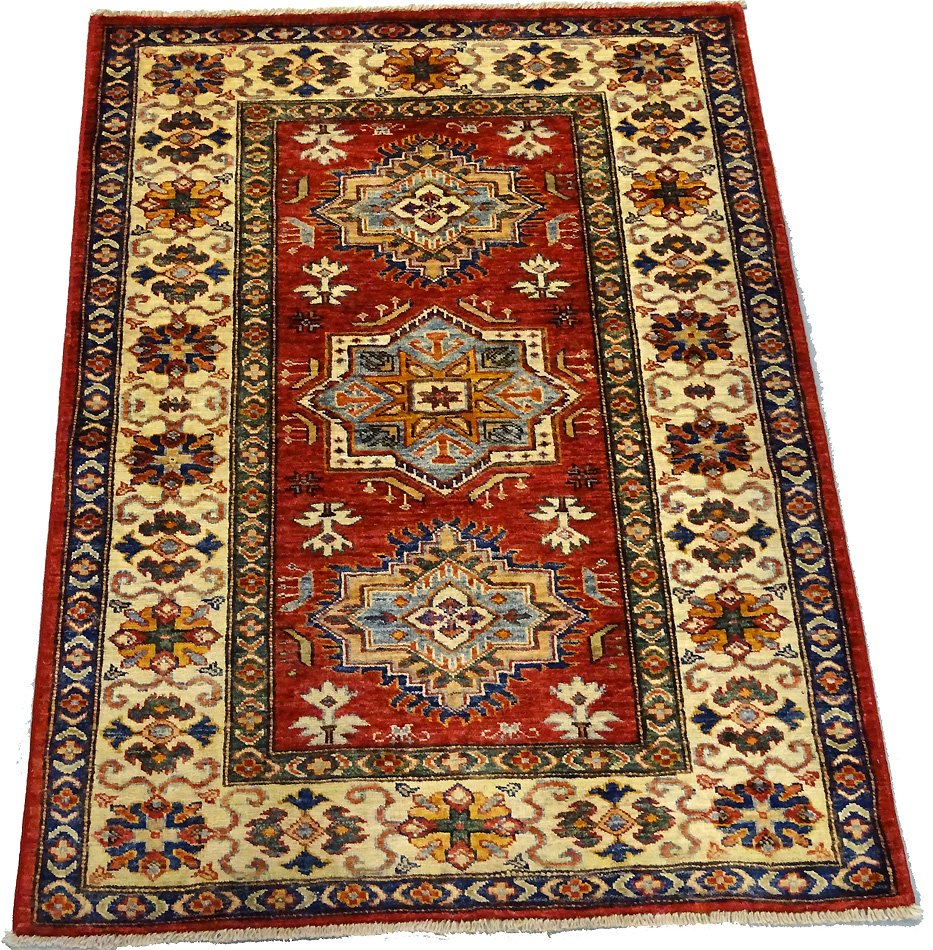 Dimensions : 132 x 97 cm -laine- Pays Afghanistan - Épaisseur : 8 mm - Densité de nouage : 300.000 Nœuds au m² - Surface : 1.28 m² - Poids : 3.84 Kgs - Age : contemporain - Confection : Noué main - Forme : Tapis de chambre - Type : Tapis Oriental