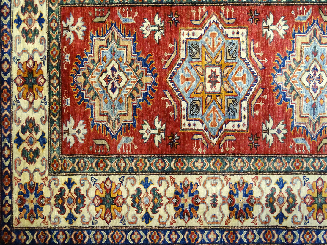 Dimensions : 148 x 92 cm -laine- Pays Afghanistan - Épaisseur : 8 mm - Densité de nouage : 300.000 Nœuds au m² - Surface : 1.36 m² - Poids : 4.08 Kgs - Age : contemporain - Confection : Noué main - Forme : Tapis de chambre - Type : Tapis Oriental