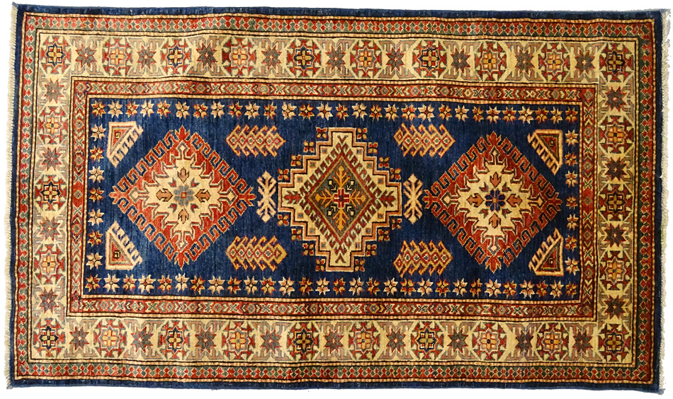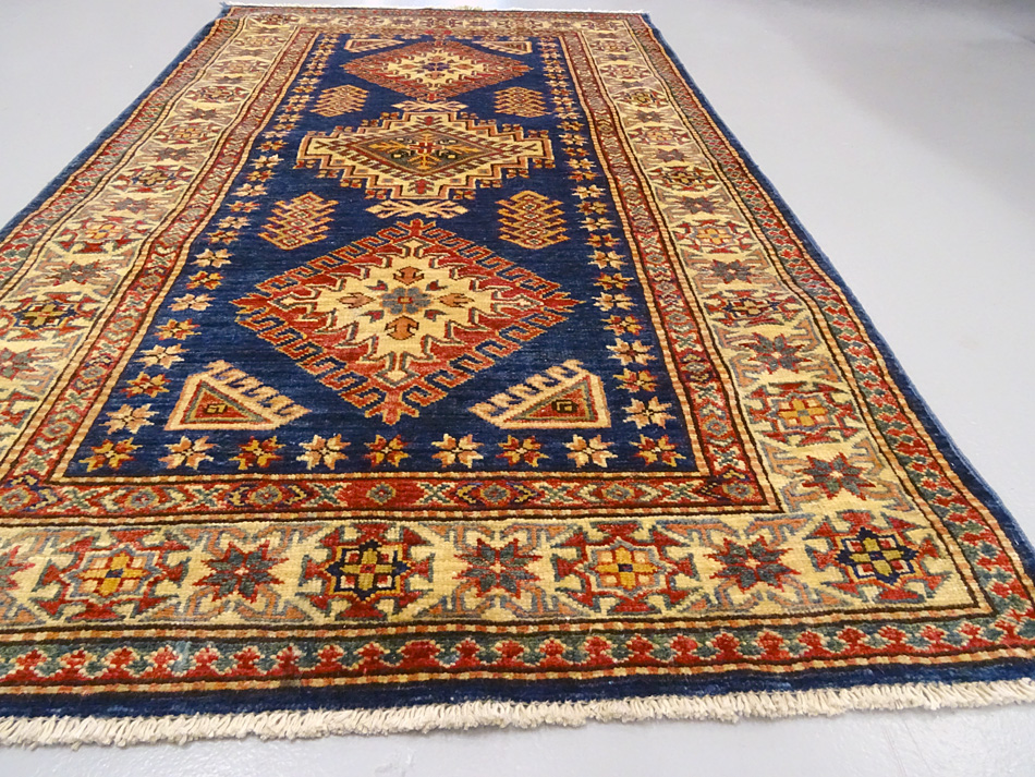 Dimensions : 144 x 88 cm -laine- Pays Afghanistan - Épaisseur : 8 mm - Densité de nouage : 300.000 Nœuds au m² - Surface : 1.27 m² - Poids : 3.8 Kgs - Age : contemporain - Confection : Noué main - Forme : Tapis de chambre - Type : Tapis Oriental