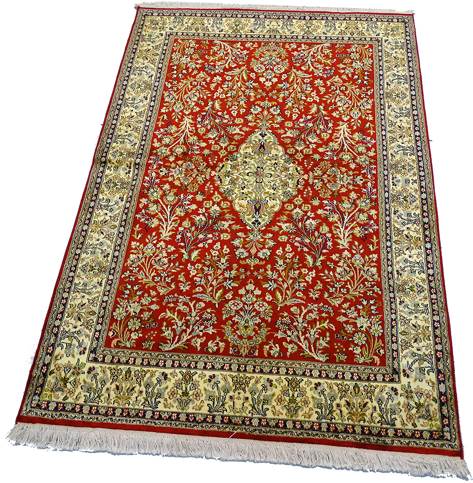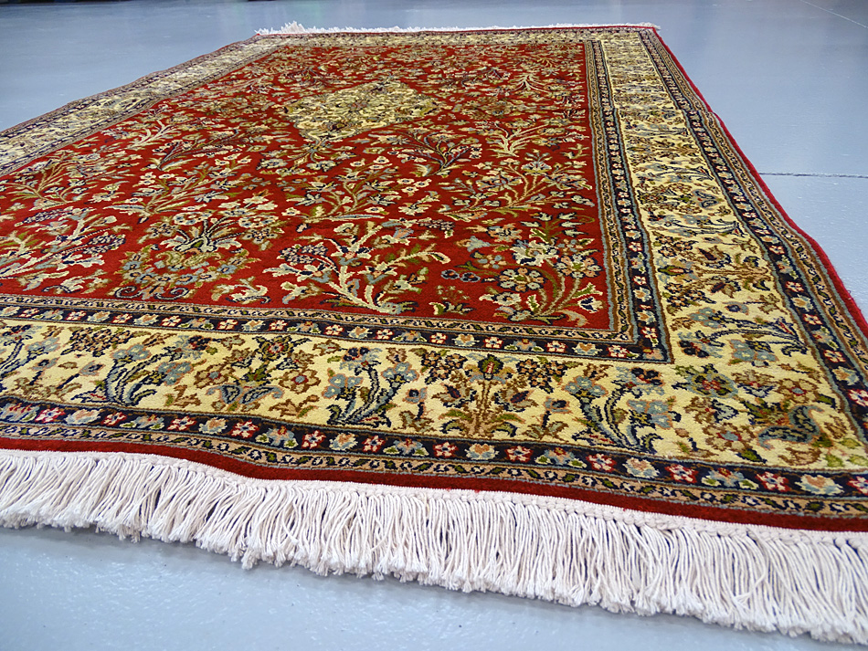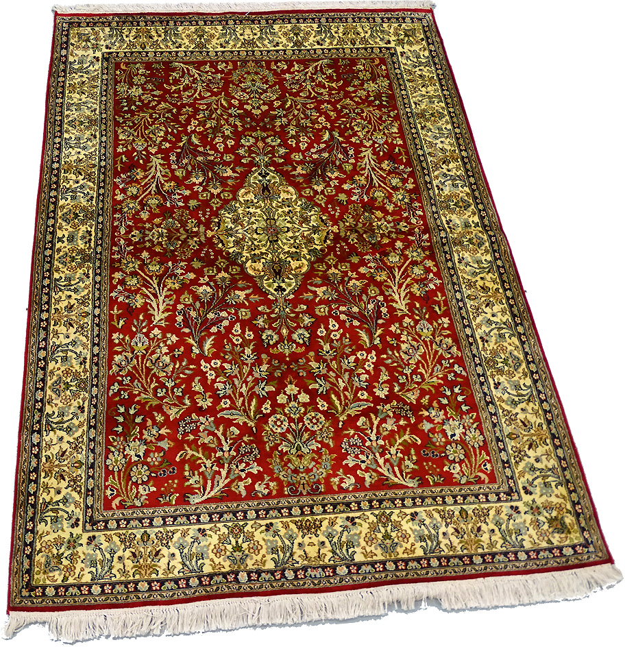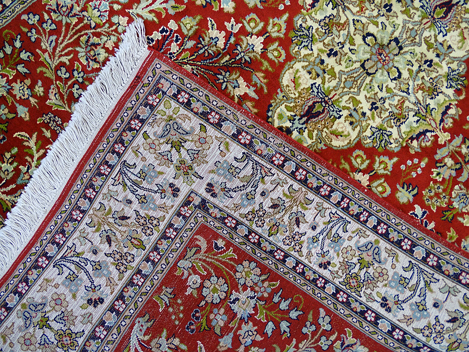 Dimensions : 183 x 122 cm -soie- Pays Inde - Épaisseur : 6 mm - Densité de nouage : 500.000 Nœuds au m² - Surface : 2.23 m² - Poids : 4.47 Kgs - Age : contemporain - Confection : Noué main - Forme : Tapis de chambre - Type : Tapis Oriental