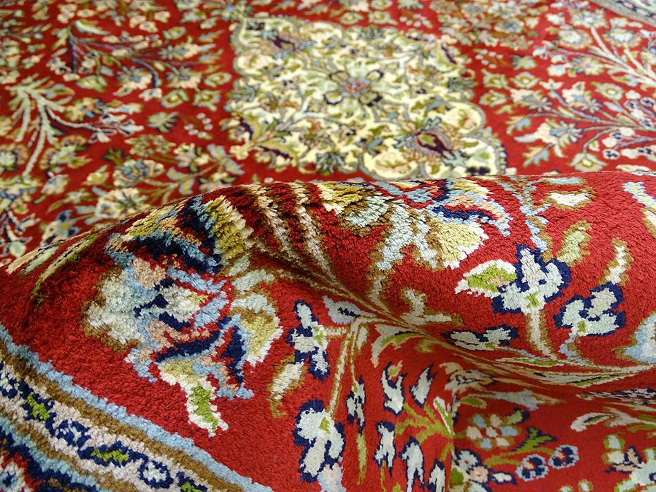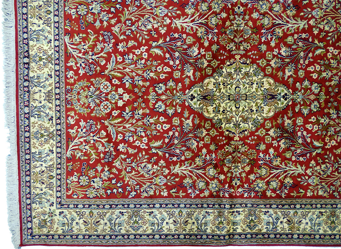 Dimensions : 180 x 123 cm -soie- Pays Inde - Épaisseur : 6 mm - Densité de nouage : 500.000 Nœuds au m² - Surface : 2.21 m² - Poids : 4.43 Kgs - Age : contemporain - Confection : Noué main - Forme : Tapis de chambre - Type : Tapis Oriental