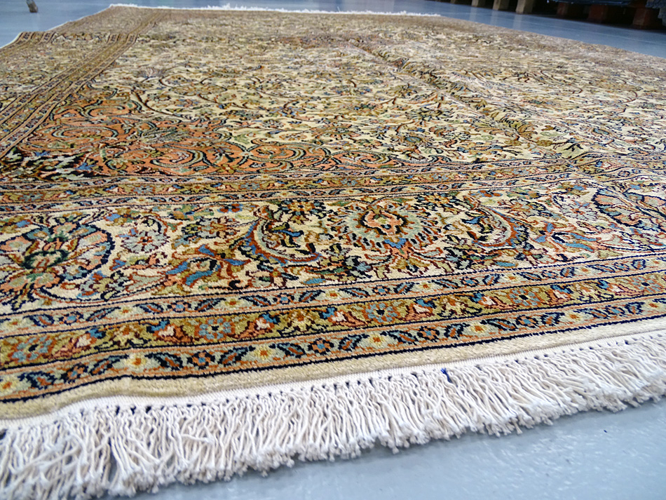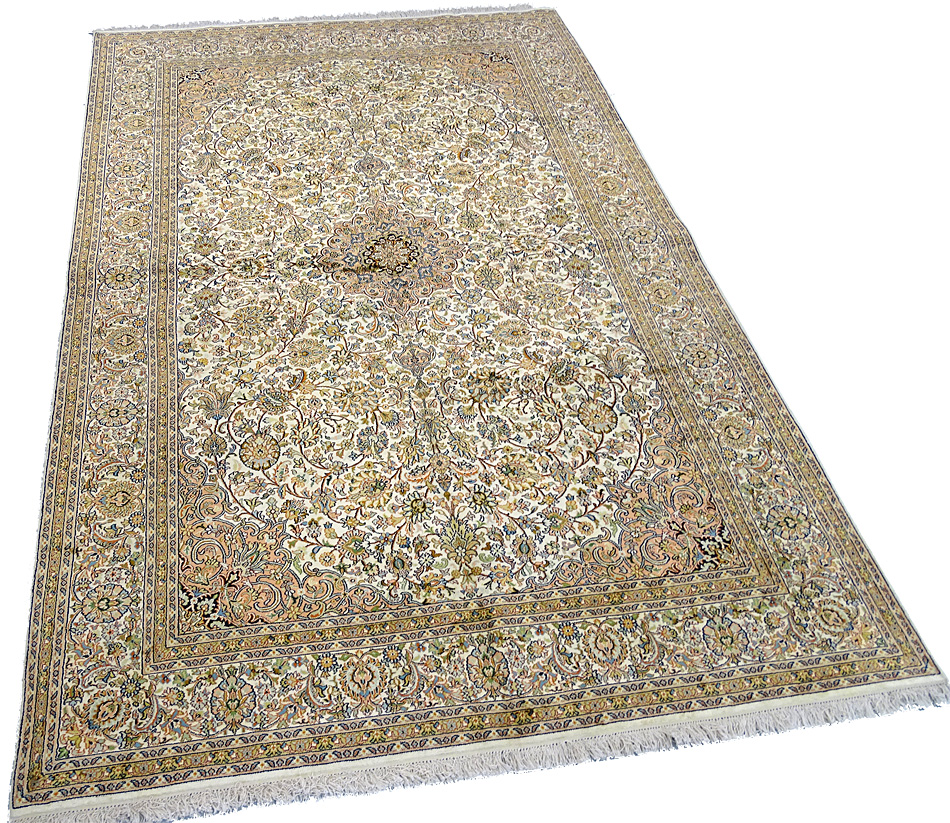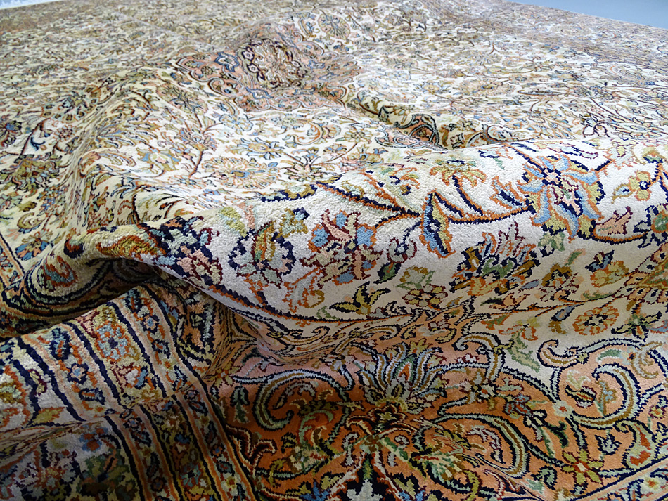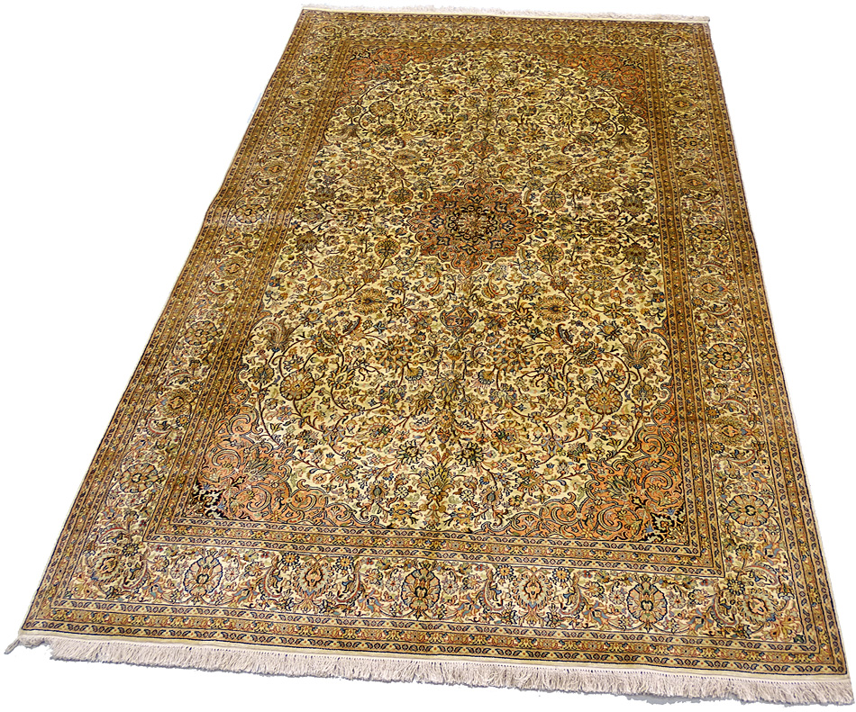 Dimensions : 279 x 186 cm -soie- Pays Inde - Épaisseur : 6 mm - Densité de nouage : 500.000 Nœuds au m² - Surface : 5.19 m² - Poids : 10.38 Kgs - Age : contemporain - Confection : Noué main - Forme : Tapis de salon - Type : Tapis Oriental