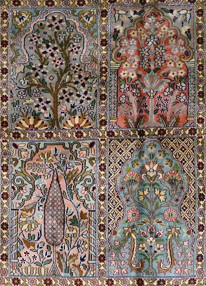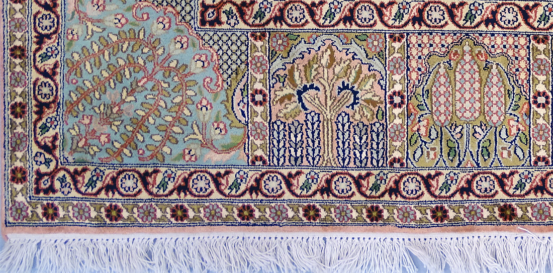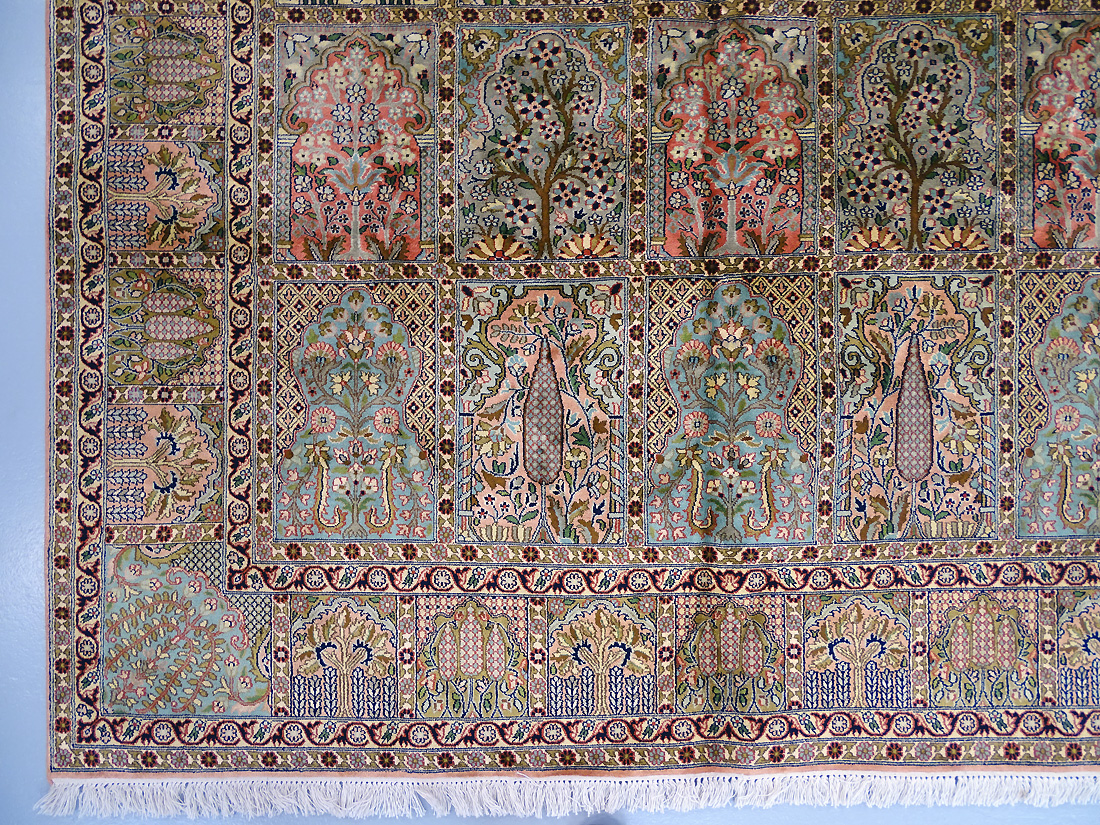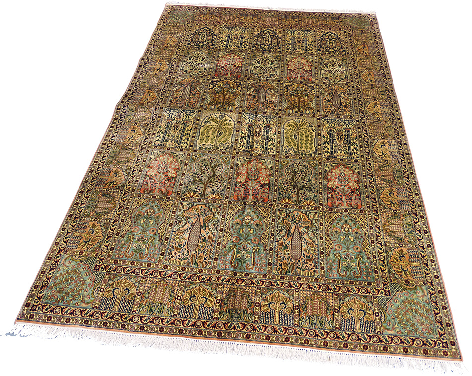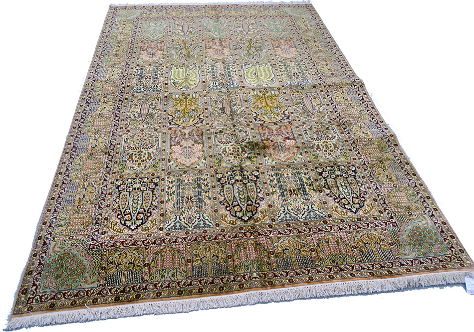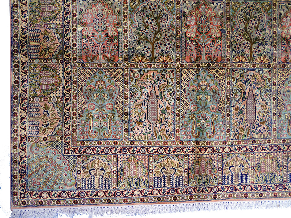 Dimensions : 279 x 186 cm -soie- Pays Inde - Épaisseur : 6 mm - Densité de nouage : 500.000 Nœuds au m² - Surface : 5.19 m² - Poids : 10.38 Kgs - Age : contemporain - Confection : Noué main - Forme : Tapis de salon - Type : Tapis Oriental