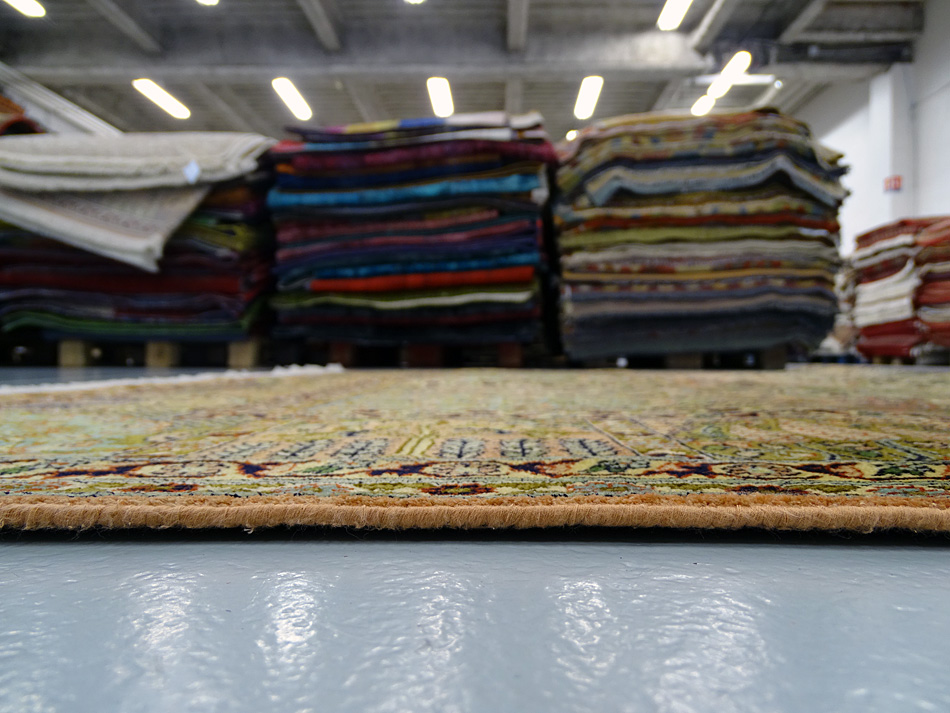Dimensions : 275 x 181 cm -soie- Pays Inde - Épaisseur : 6 mm - Densité de nouage : 500.000 Nœuds au m² - Surface : 4.98 m² - Poids : 9.96 Kgs - Age : contemporain - Confection : Noué main - Forme : Tapis de salon - Type : Tapis Oriental