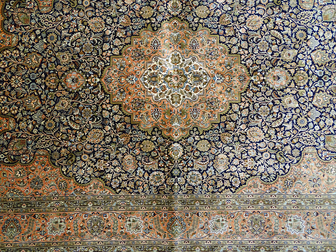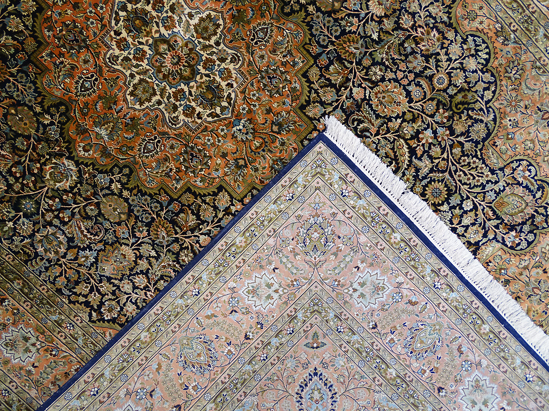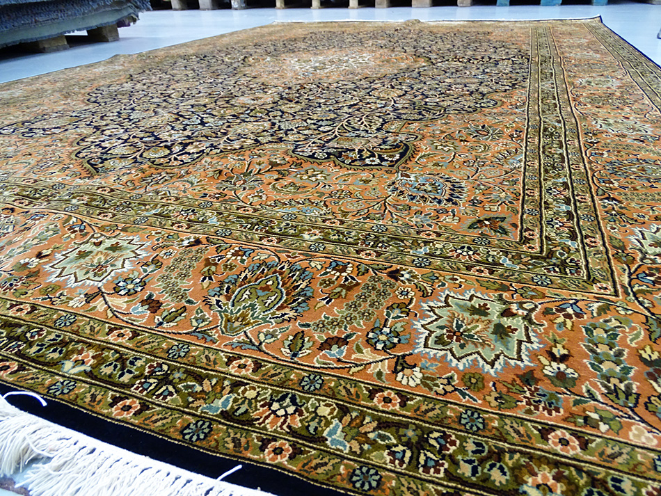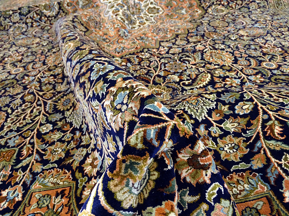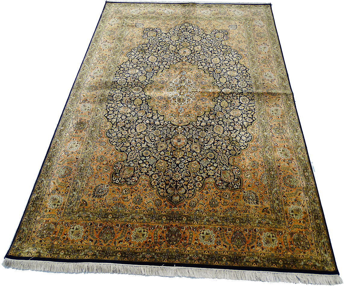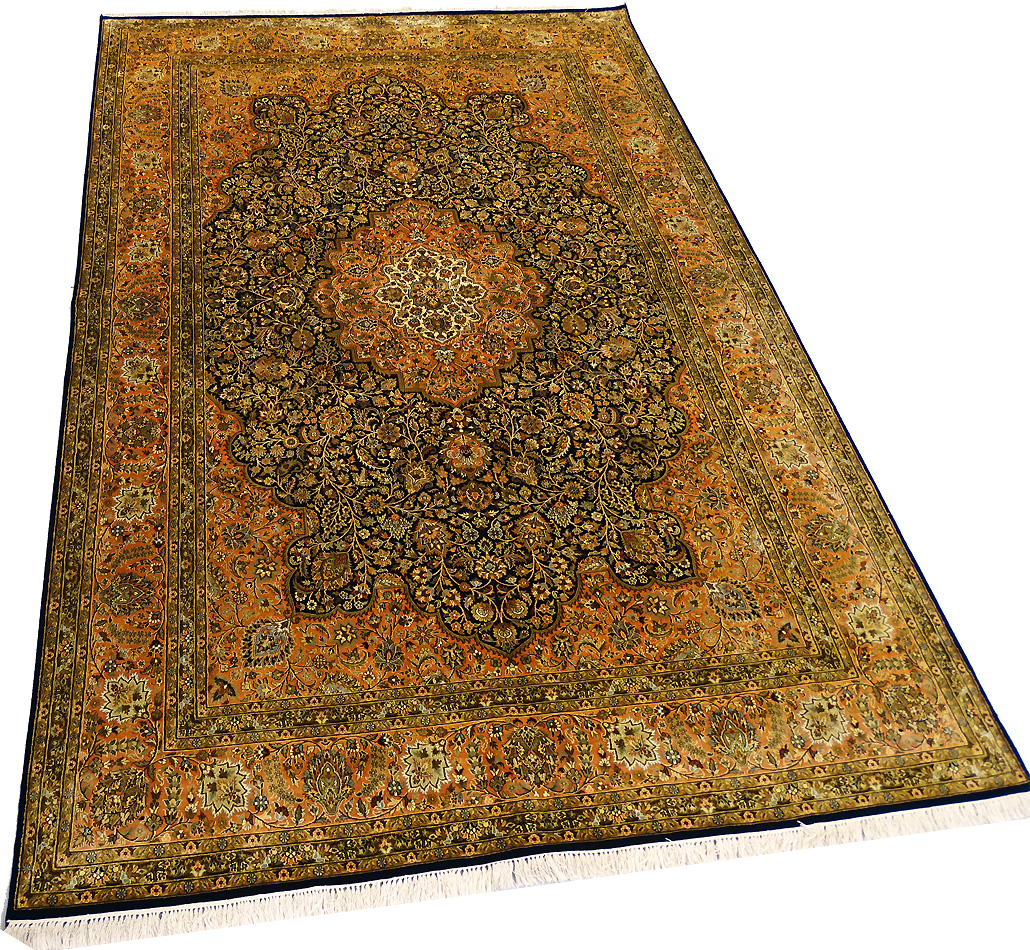 Dimensions : 279 x 186 cm -soie- Pays Inde - Épaisseur : 6 mm - Densité de nouage : 500.000 Nœuds au m² - Surface : 5.19 m² - Poids : 10.38 Kgs - Age : contemporain - Confection : Noué main - Forme : Tapis de salon - Type : Tapis Oriental