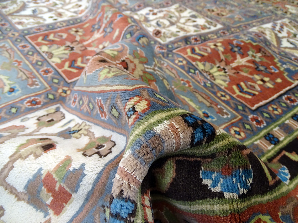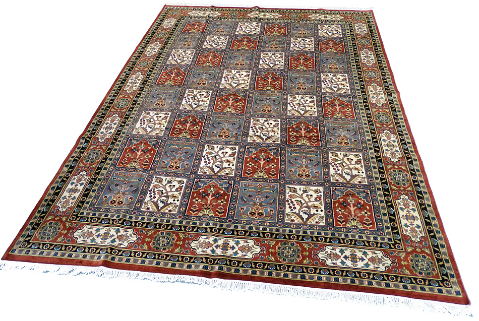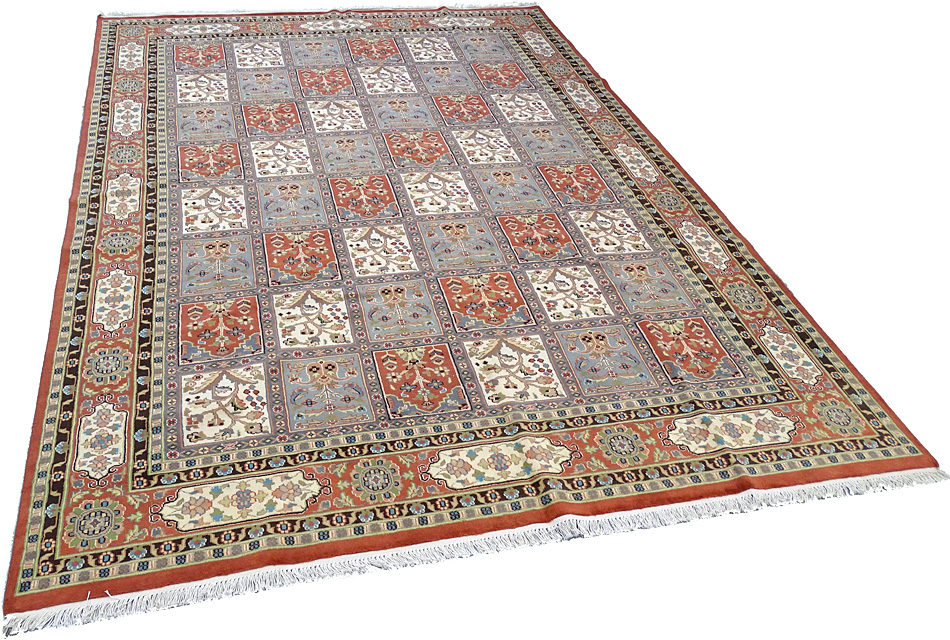 Dimensions : 326 x 255 cm -laine et soie- Pays Pakistan - Épaisseur : 7 mm - Densité de nouage : 200.000 Nœuds au m² - Surface : 8.31 m² - Poids : 20.78 Kgs - Age : contemporain - Confection : Noué main - Forme : Tapis de salon - Type : Tapis Oriental