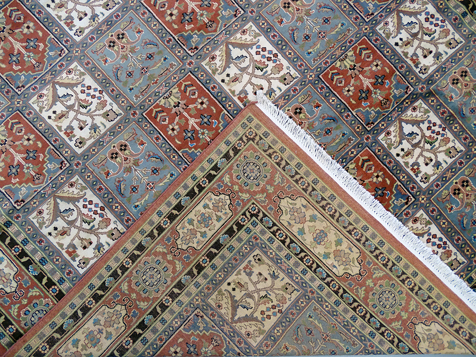 Dimensions : 360 x 280 cm -laine et soie- Pays Pakistan - Épaisseur : 7 mm - Densité de nouage : 200.000 Nœuds au m² - Surface : 10.08 m² - Poids : 25.2 Kgs - Age : contemporain - Confection : Noué main - Forme : Tapis de salon - Type : Tapis Oriental