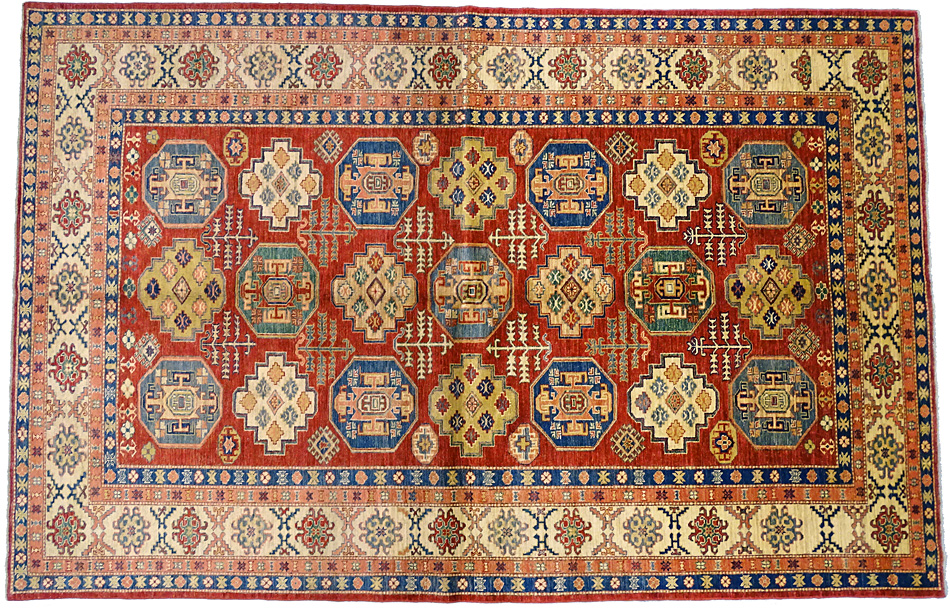 Dimensions : 292 x 196 cm -laine- Pays Afghanistan - Épaisseur : 8 mm - Densité de nouage : 300.000 Nœuds au m² - Surface : 5.72 m² - Poids : 17.17 Kgs - Age : contemporain - Confection : Noué main - Forme : Tapis de salon - Type : Tapis Oriental