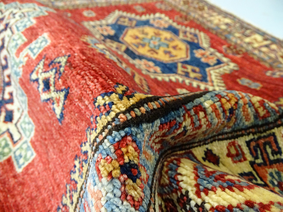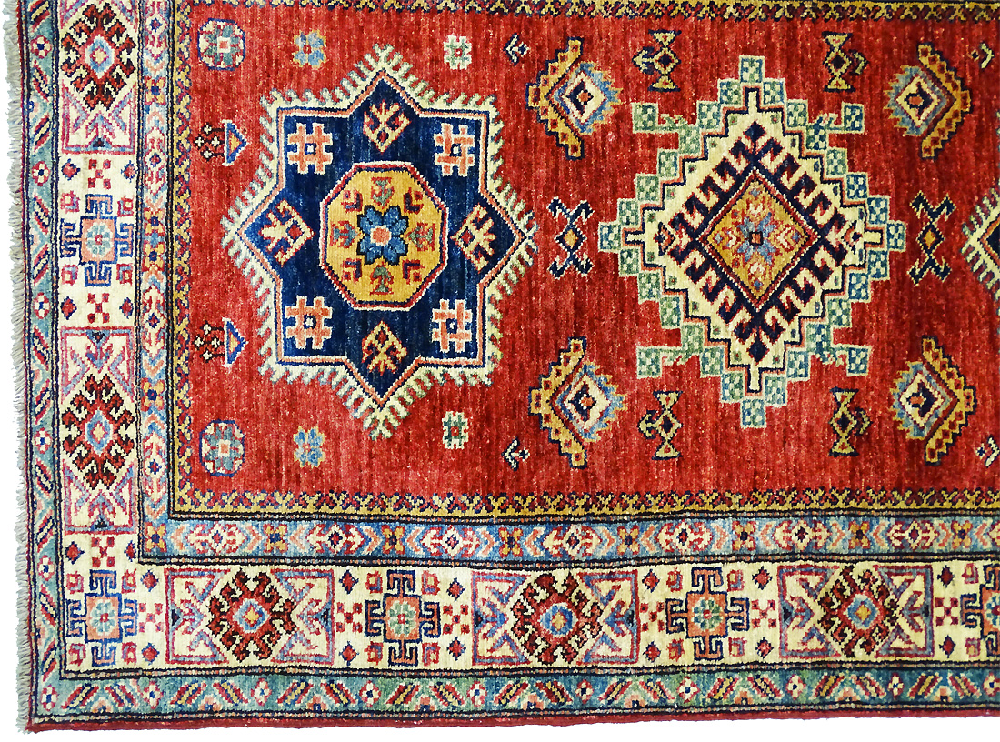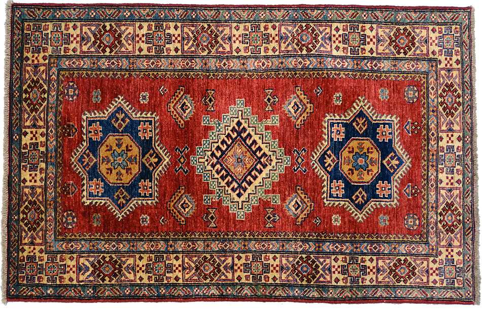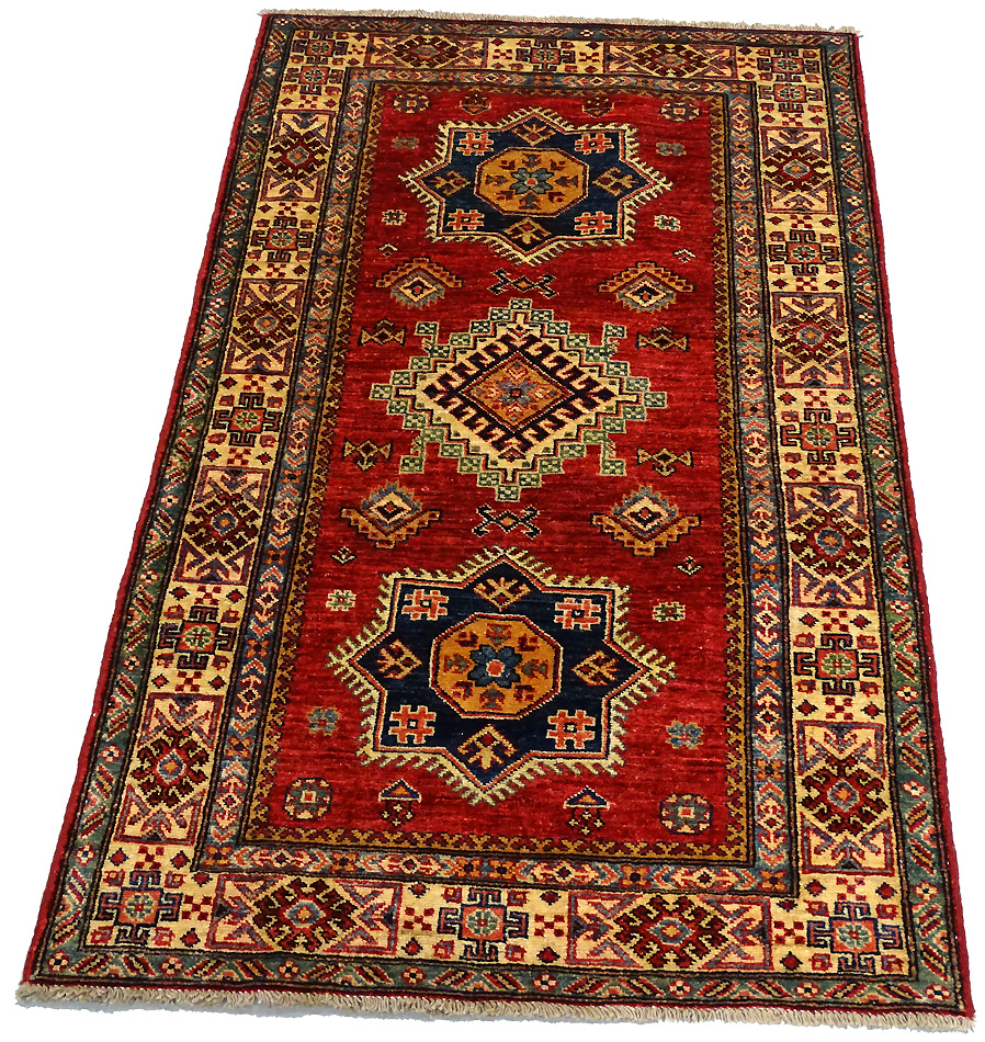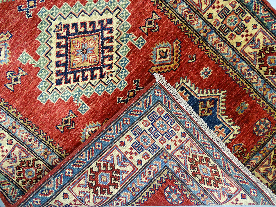 Dimensions : 132 x 97 cm -laine- Pays Afghanistan - Épaisseur : 8 mm - Densité de nouage : 300.000 Nœuds au m² - Surface : 1.28 m² - Poids : 3.84 Kgs - Age : contemporain - Confection : Noué main - Forme : Tapis de chambre - Type : Tapis Oriental