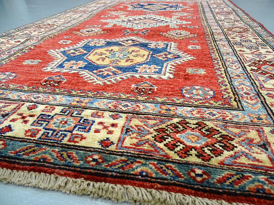Dimensions : 144 x 88 cm -laine- Pays Afghanistan - Épaisseur : 8 mm - Densité de nouage : 300.000 Nœuds au m² - Surface : 1.27 m² - Poids : 3.8 Kgs - Age : contemporain - Confection : Noué main - Forme : Tapis de chambre - Type : Tapis Oriental