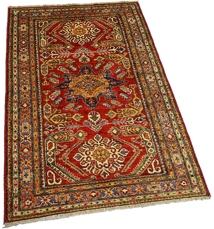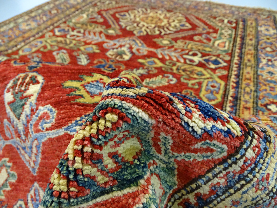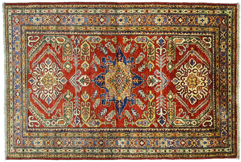 Dimensions : 132 x 97 cm -laine- Pays Afghanistan - Épaisseur : 8 mm - Densité de nouage : 300.000 Nœuds au m² - Surface : 1.28 m² - Poids : 3.84 Kgs - Age : contemporain - Confection : Noué main - Forme : Tapis de chambre - Type : Tapis Oriental